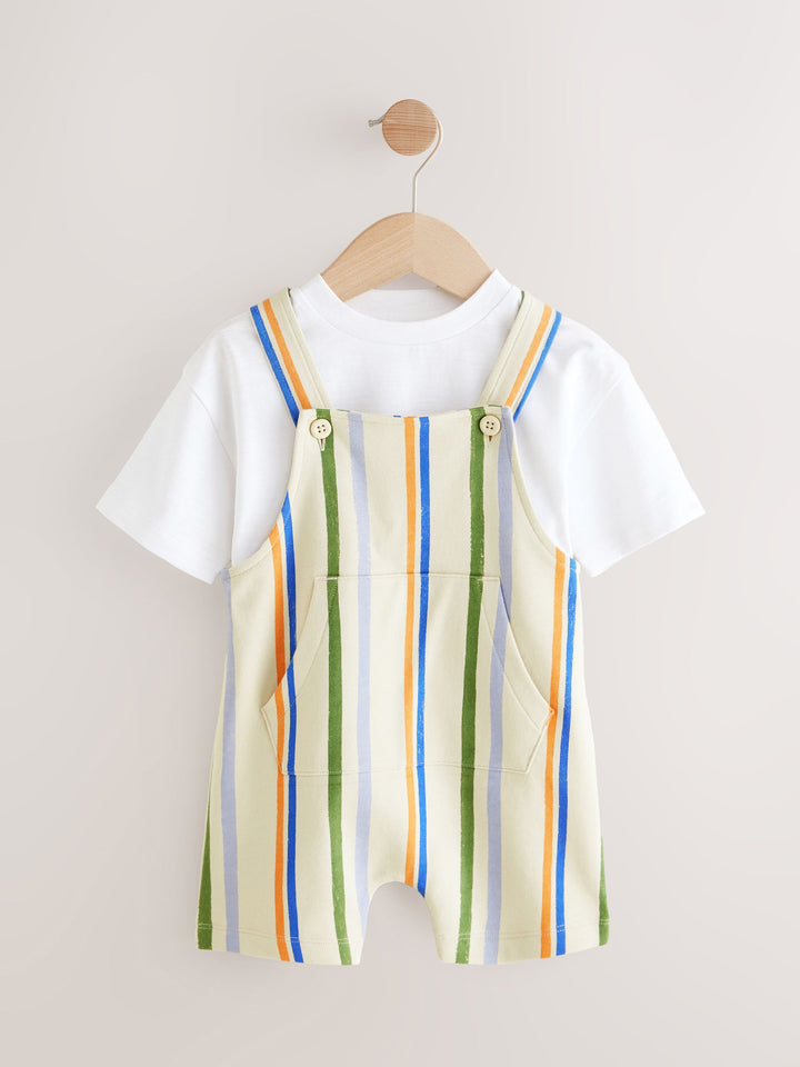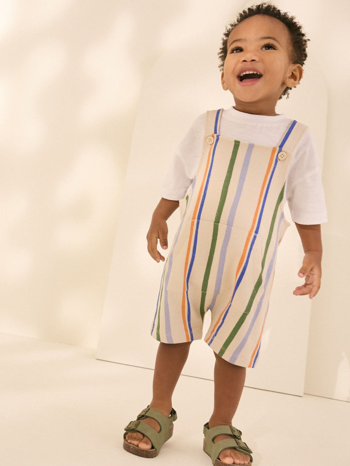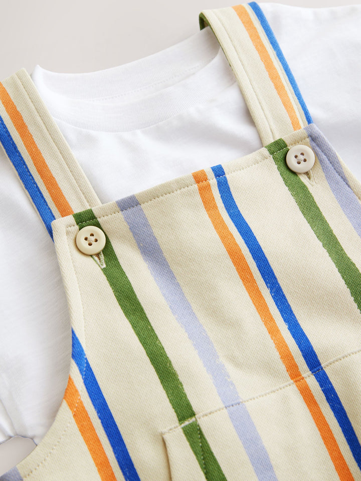 Stone Pastel Stripe 100% Cotton 100% Cotton Jersey Dungarees (3mths-7yrs)