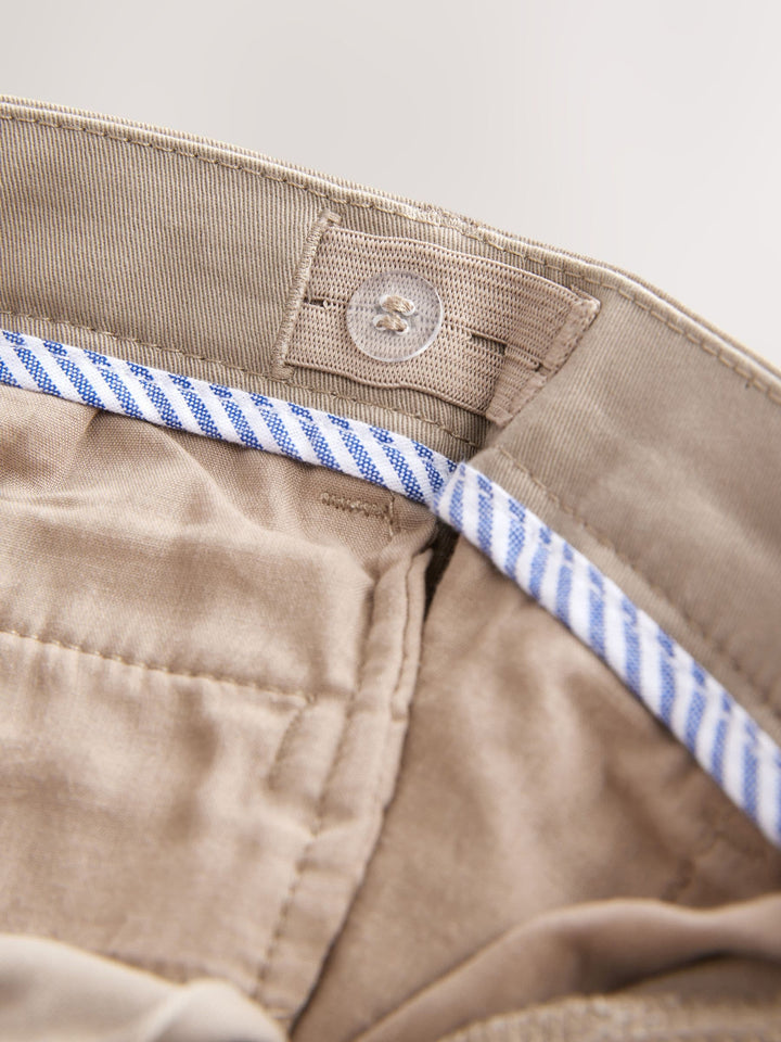 These easy-to-wear stone trousers are made in soft cotton with added stretch for comfort. Designed with traditional chino styling, they work equally well for their casual wardrobe as they do for their partywear edit.Keep the look low key with laid back t-shirts or take it through to party season with a smart shirt and belt.Chino style Comfort stretch Turn-up hem Button fastening Belt loops Adjustable waist Skinny fit 98% Cotton, 2% Elastane. Country of Origin: Bangladesh