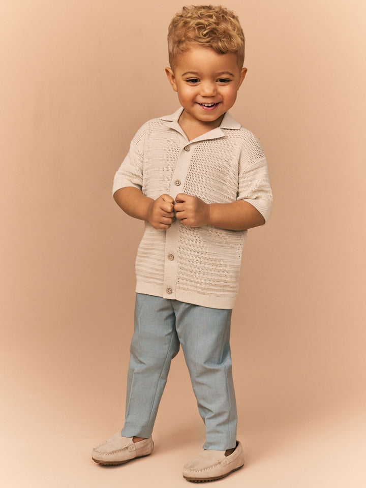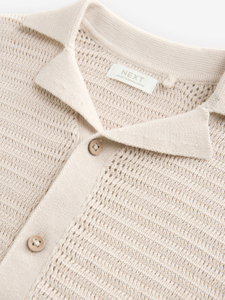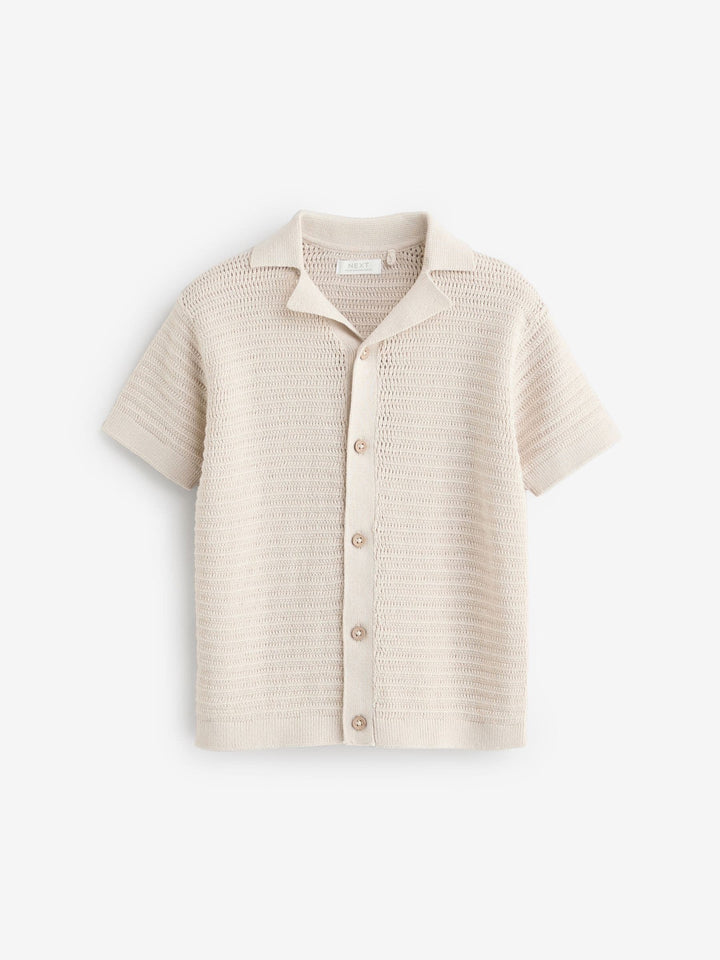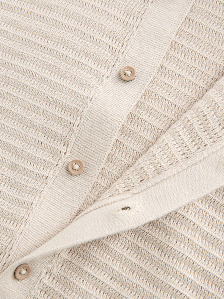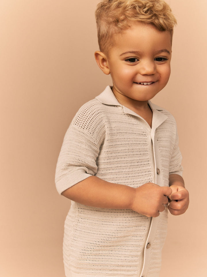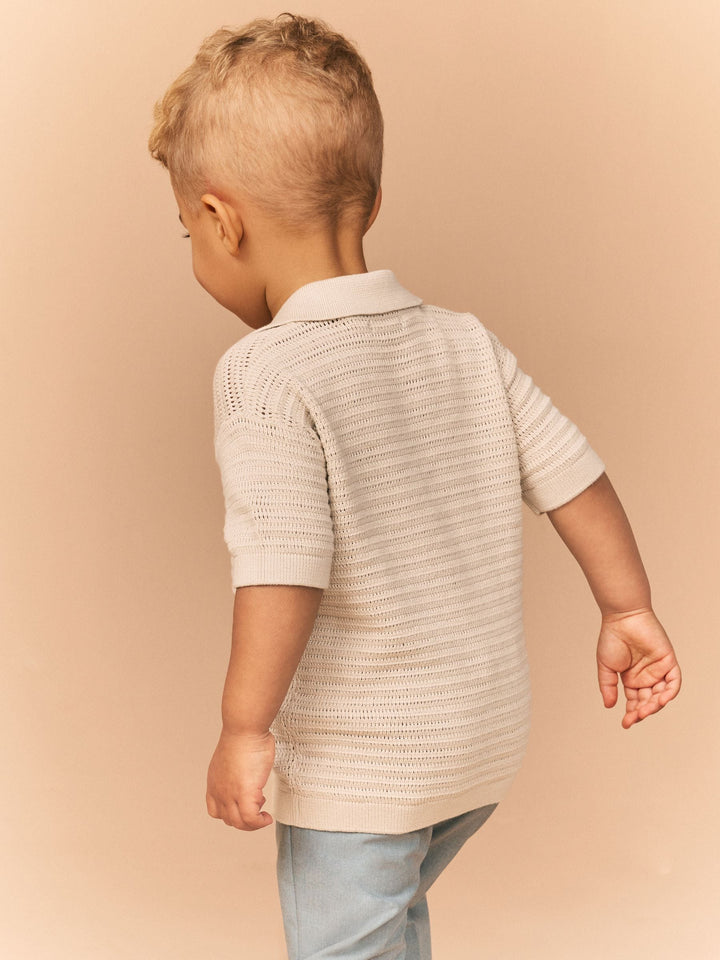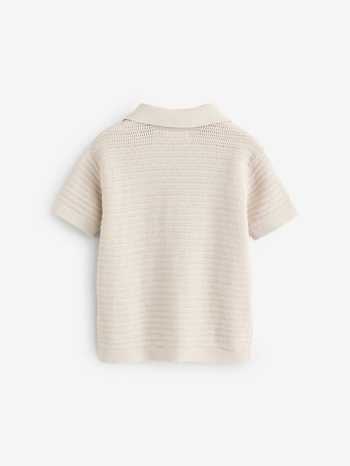 Stone Textured Revere Collar Short Sleeve Knitted 100% Cotton Polo Shirt (3mths-7yrs)