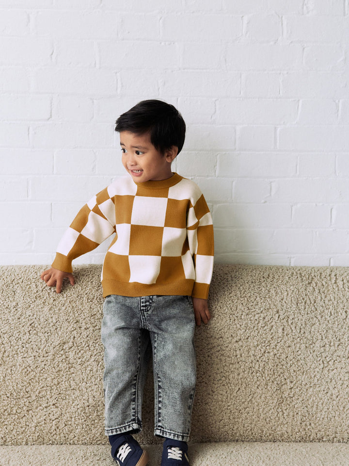 Bring vibrant energy to his wardrobe with this fun knitted crew neck jumper, perfect for stylish casual wear and layering. Featuring a checkerboard pattern in playful nursery colours, this jumper is made from soft VPN yarn for a comfortable and cosy feel. Knitted Crew Neck Jumper Features a checkerboard pattern Made from soft VPN yarn for comfort 50% Viscose, 28% Recycled polyester, 22% Nylon. Country of Origin: Myanmar