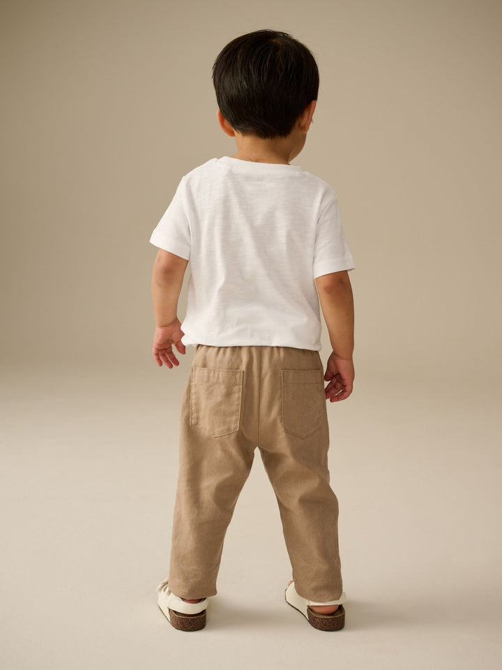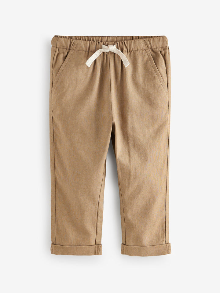 Tan Brown Regular Fit Linen Blend Pull on Trousers (3mths-7yrs)