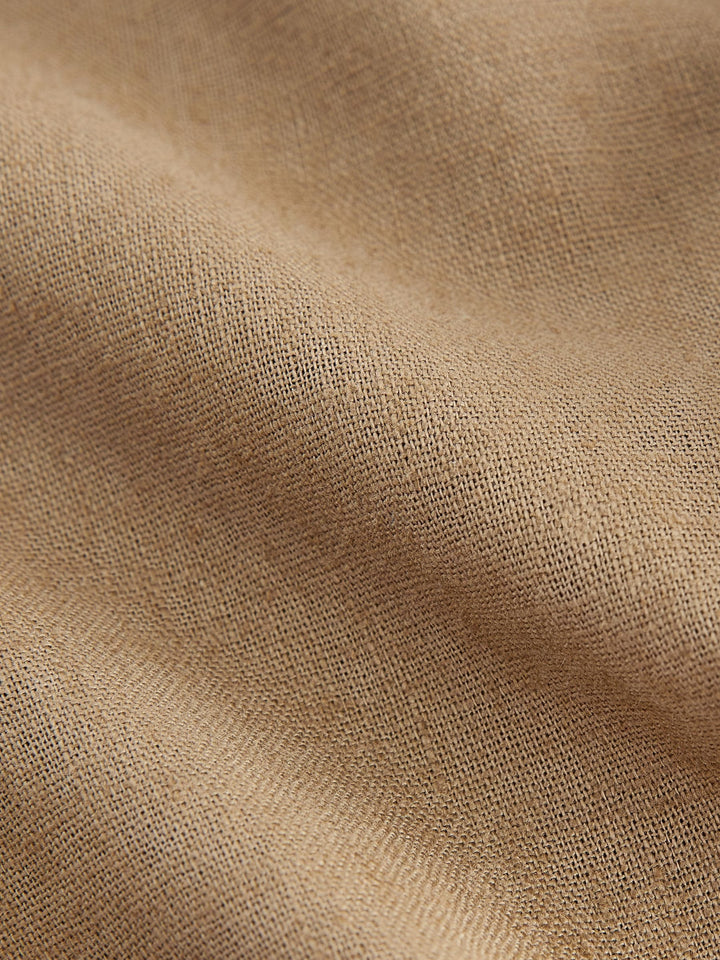 Easy to wear, stylish and made from a summer-friendly cotton and linen blend, these tan brown trousers have a loose fit, an adjustable elasticated waistband, side pockets and a turn-up ankle hem. Loose fit Cotton and linen blend Elasticated waistband Adjustable drawstring Side pockets 55% Linen, 45% Cotton. Country of Origin: Bangladesh