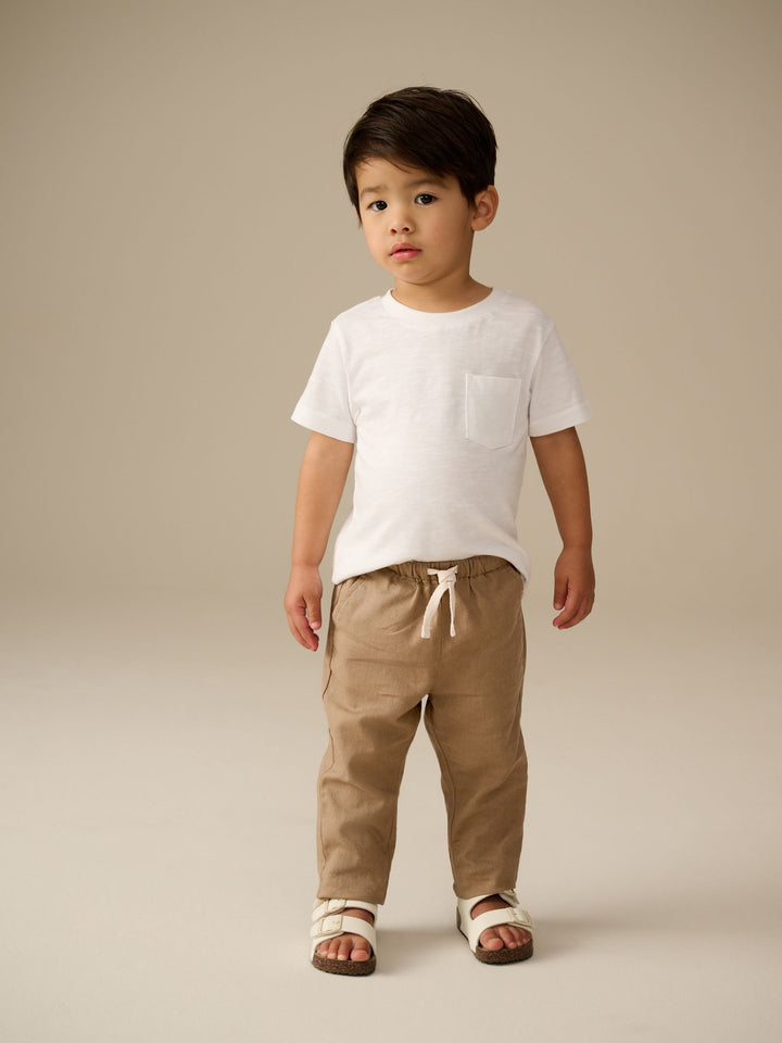 Tan Brown Regular Fit Wide Leg Linen Blend Pull On Trousers (3mths-7yrs)