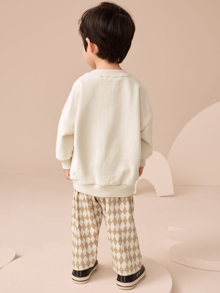 Our sweatshirt and stripes joggers set was made for having effortless styling. This two-piece set is made from breathable cotton and features a black sweatshirt and stripey printed joggers. Perfect for his outdoor adventures, add this to his rotation for a seamlessly stylish look. Two piece set 100% Cotton Sweatshirt with a smiley face Elasticated joggers Pockets Machine washable. Sweater 93% Cotton, 7% Recycled polyester. Jogger 100% Cotton. Country of Origin: Pakistan