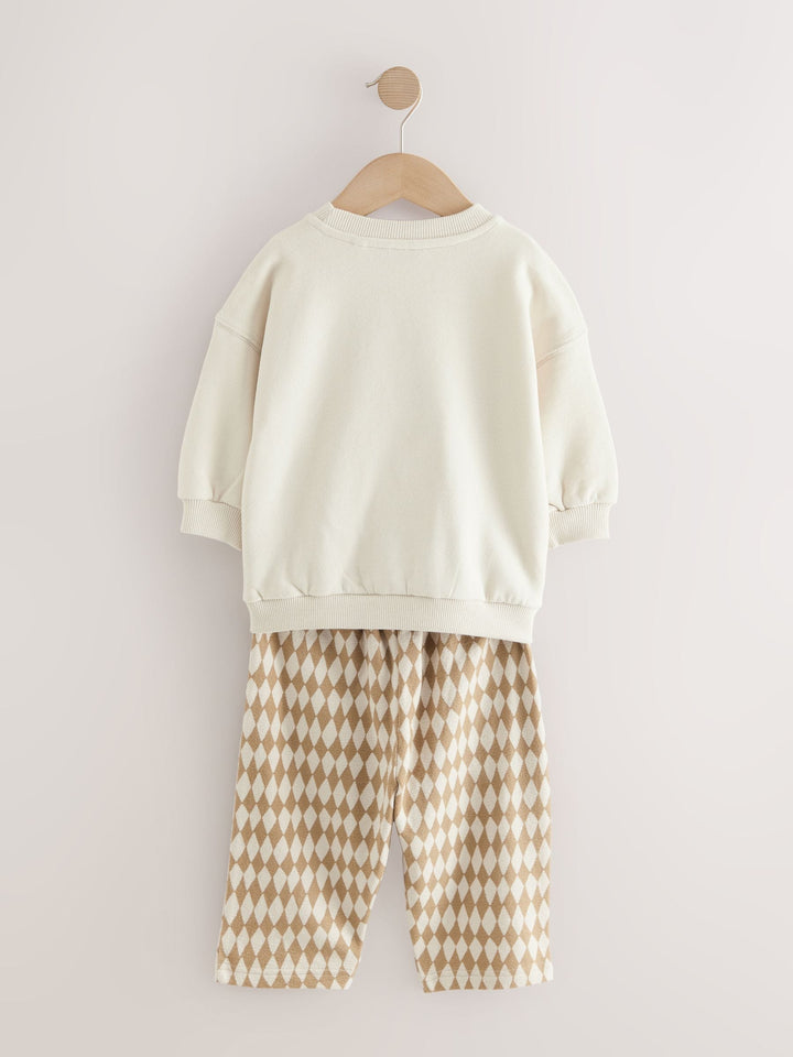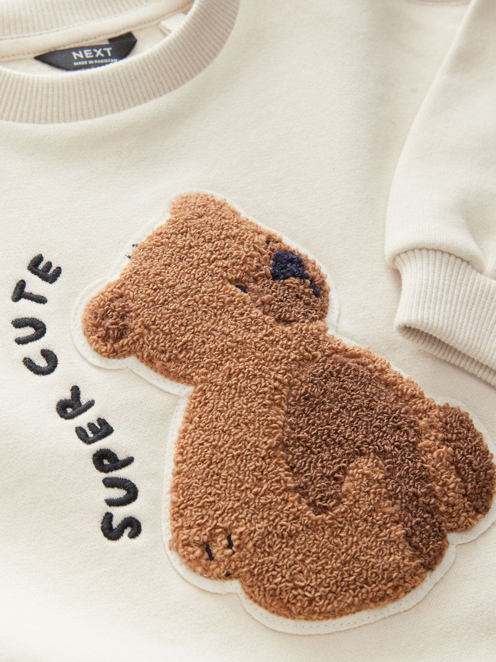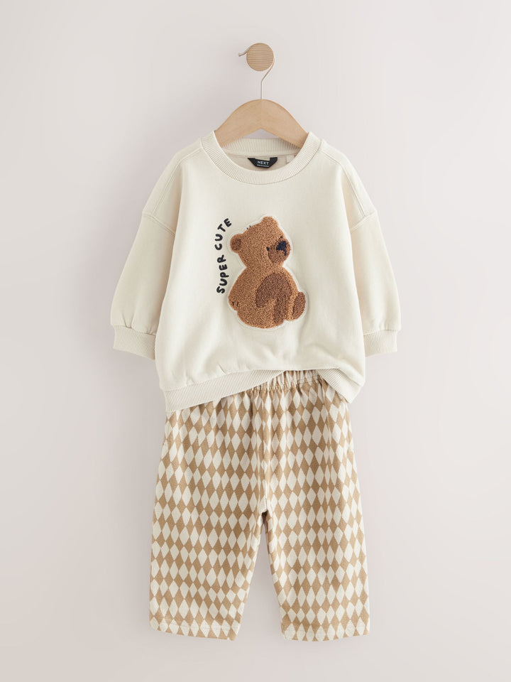 Tan Brown/White Bear Single Sweatshirt And Stripe Joggers Set (3mths-7yrs)