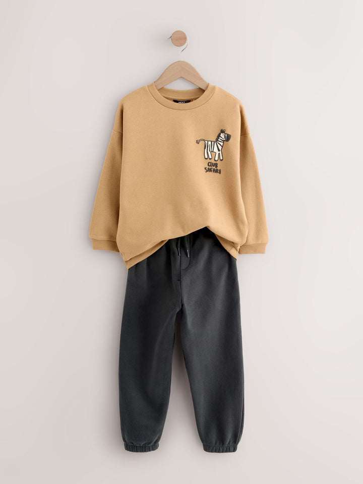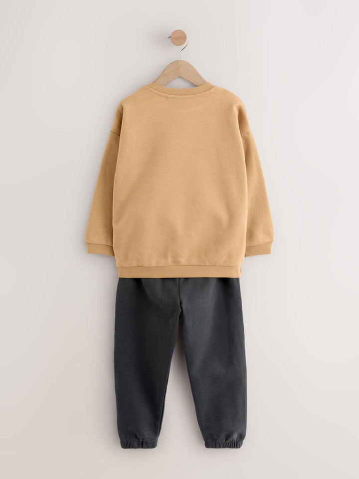 Tan/Ecru/Charcoal Grey 2 Pack Sweatshirt and Joggers Set (3mths-7yrs)