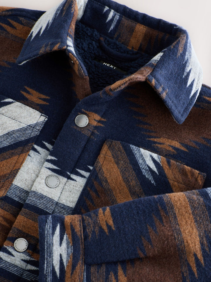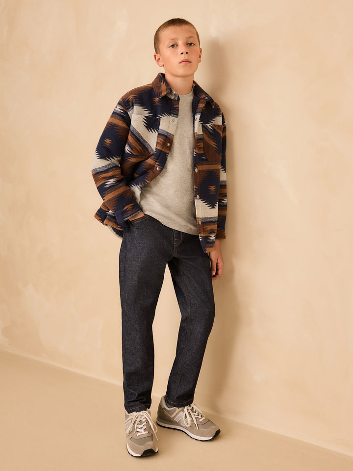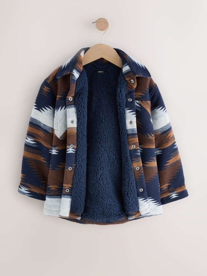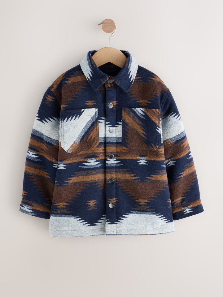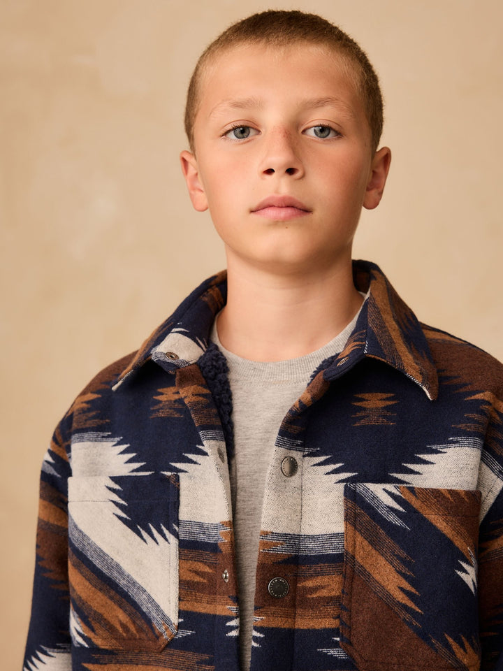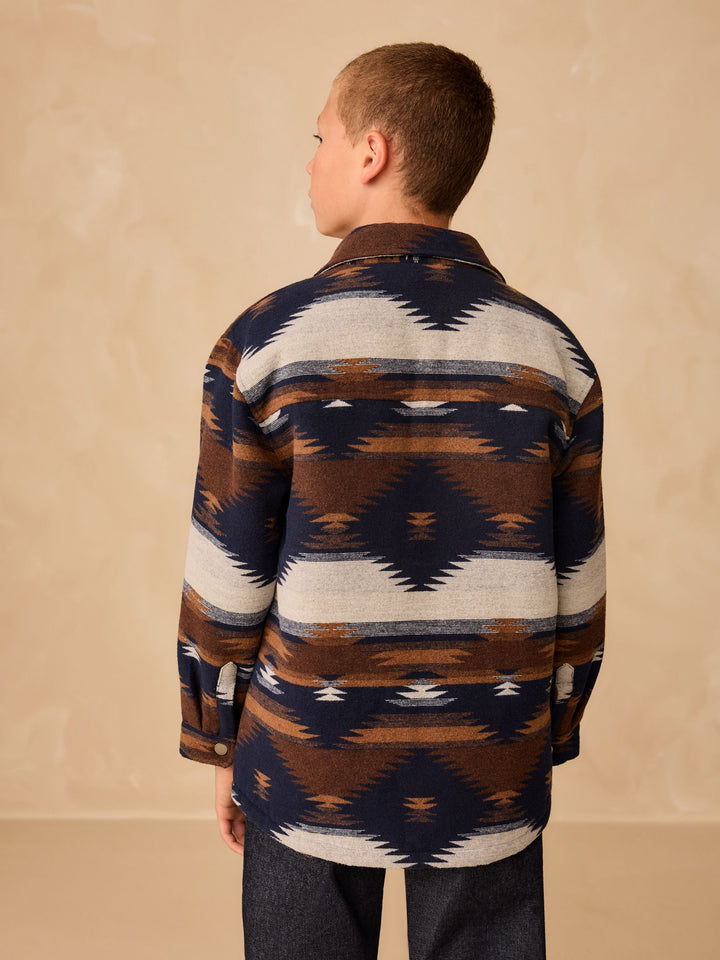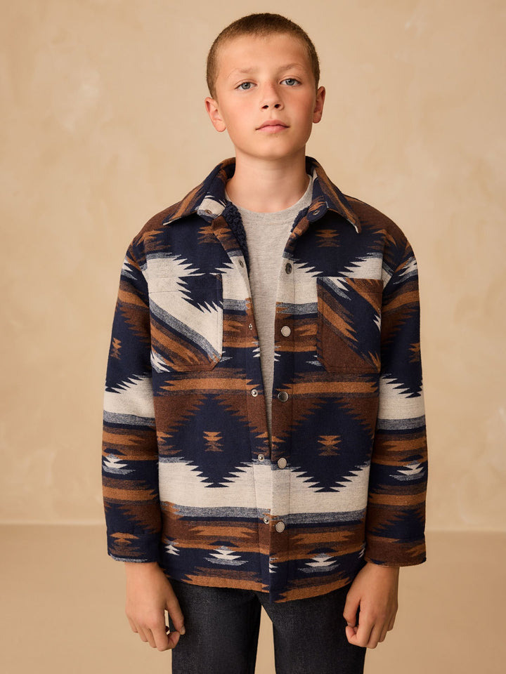 Tan/Navy Ikat Pattern Lined Shacket (3-16yrs)