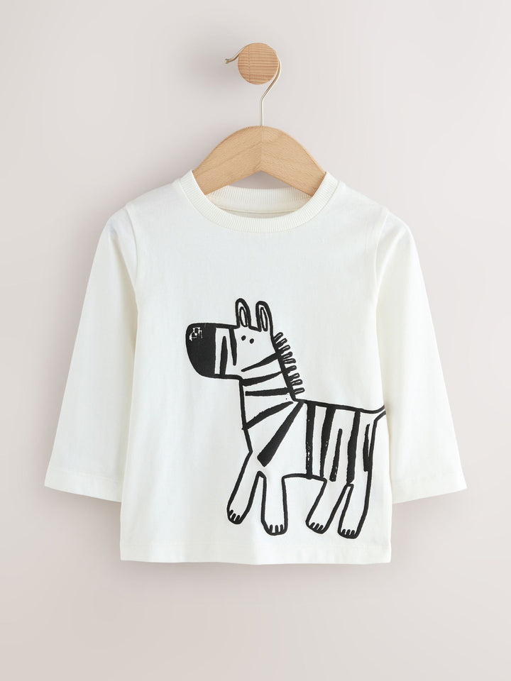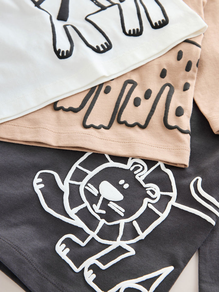 Tan/White/Black Safari Long Sleeve Graphic Print T-Shirts 3 Pack (3mths-7yrs)