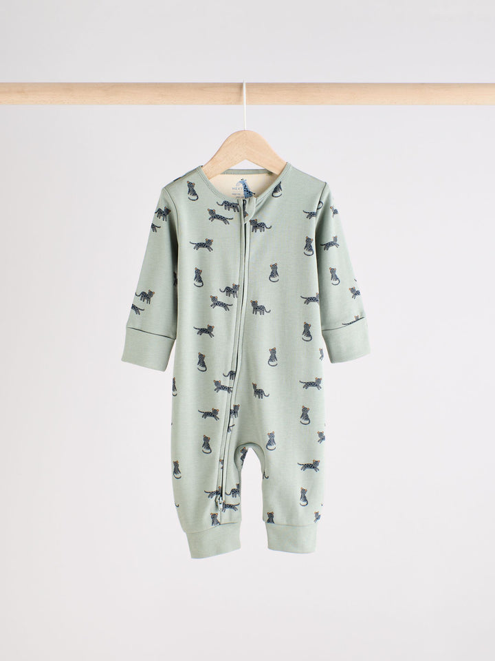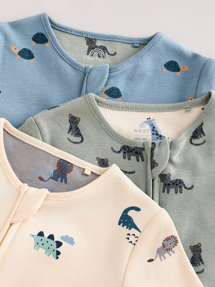 Teal Blue Baby Printed Zip Sleepsuits 3 Pack (0mths-3yrs)