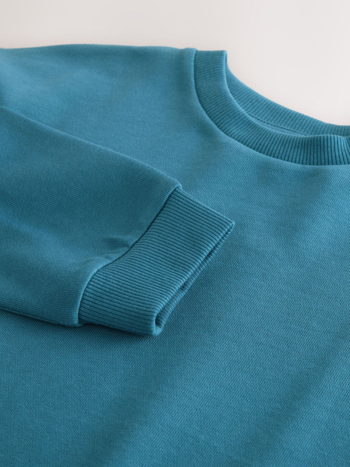 Elevate their everyday look with this long-sleeve T-shirt in teal blue. Crafted from a 280g loopback terry fabric, its relaxed fit and crew neck offer a comfortable feel. This heavyweight T-shirt is a durable and versatile essential, perfect for casual days. Relaxed fit Loopback terry fabric Crew neck Long sleeves Ribbed cuffs Machine washable. 100% Cotton. Country of Origin: Bangladesh