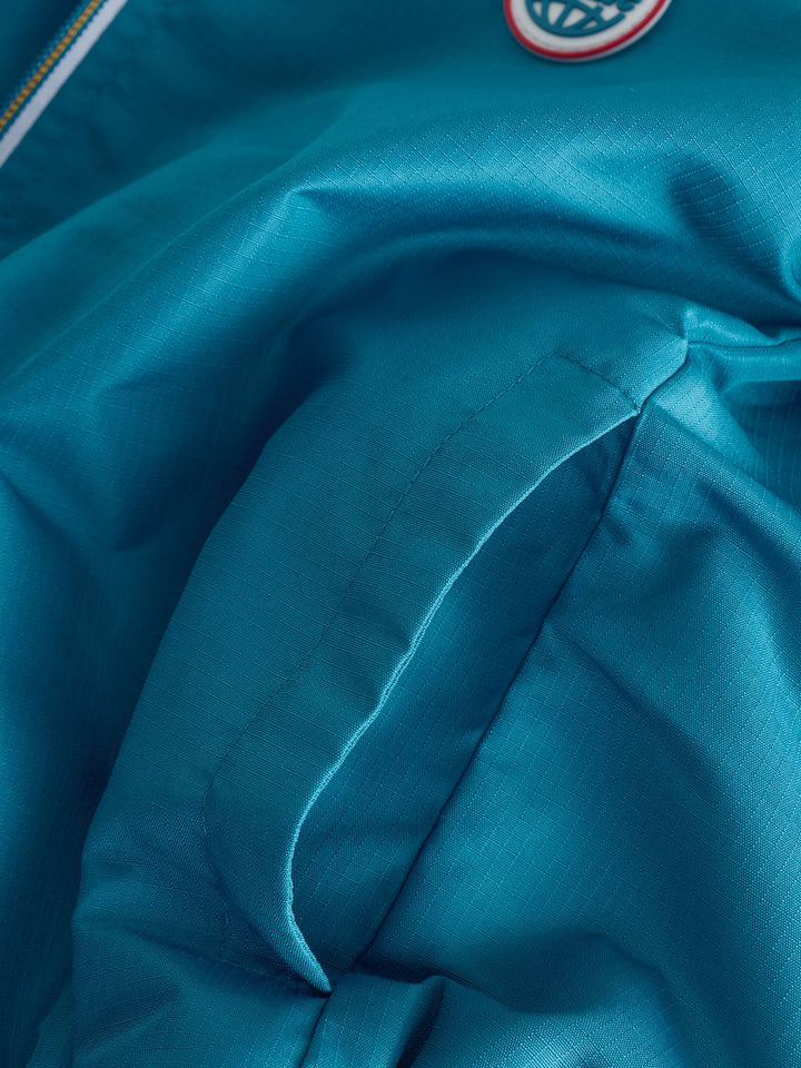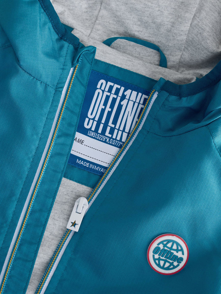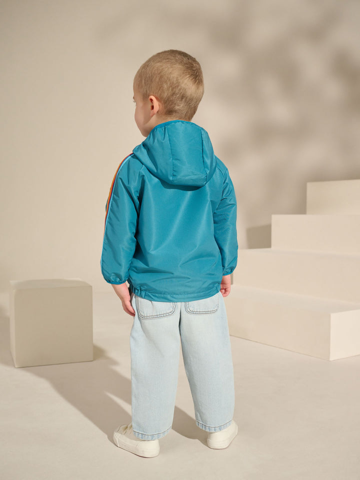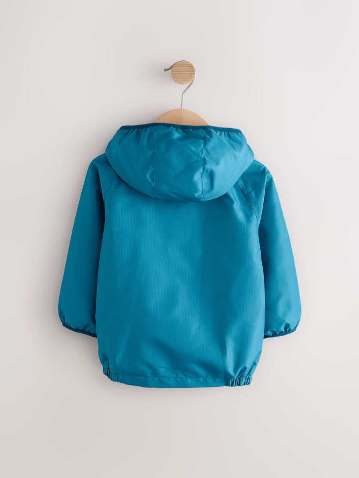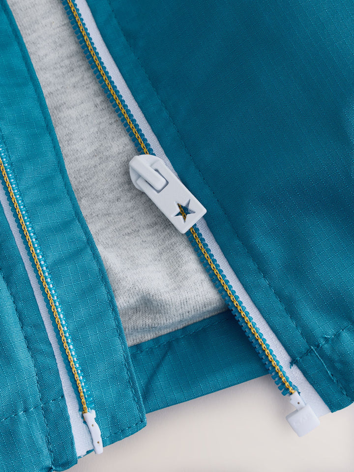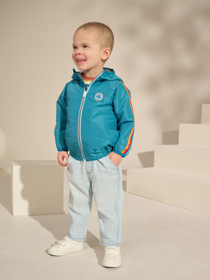 Perfect for unpredictable weather, this teal blue shower-resistant and lightweight cagoule jacket is easy to pack for adventures, featuring a soft jersey lining with a set-in hood and elasticated hems. Shower resistant Lightweight Hooded Zip fastening Jersey lining Elasticated hems Machine washable. Main 100% Recycled polyester. Body Lining 100% Cotton. Sleeve Lining 100% Recycled polyester. Country of Origin: Myanmar