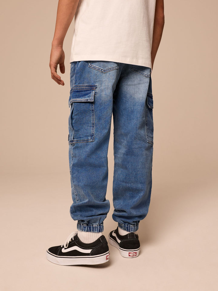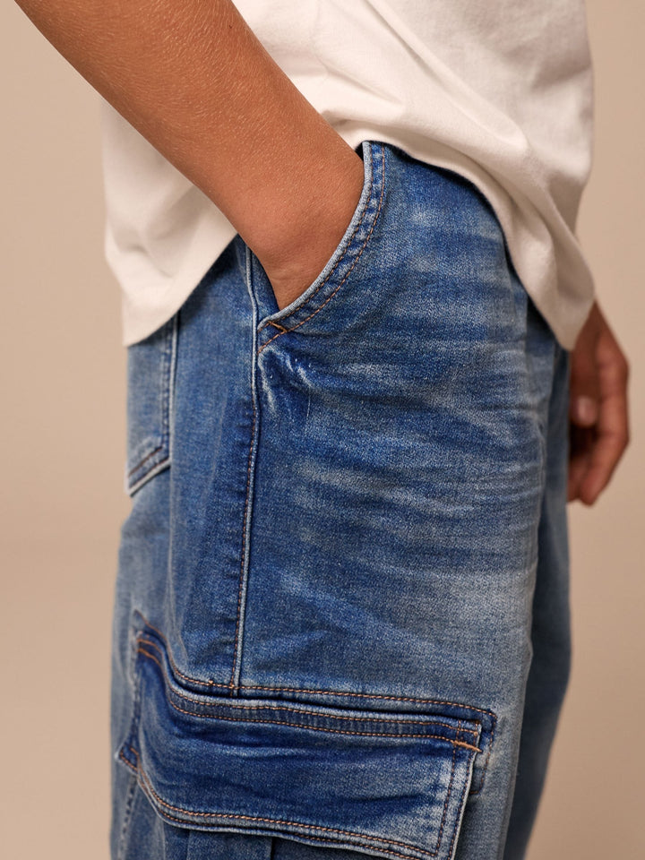 Vintage Blue Cargo Jeans With Elasticated Waist (3-16yrs)