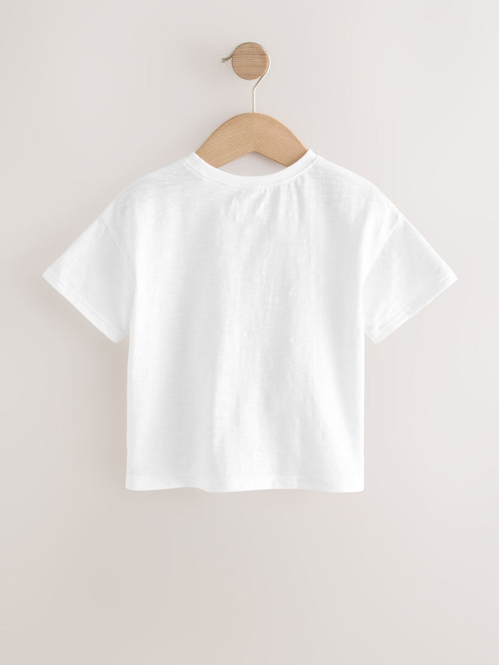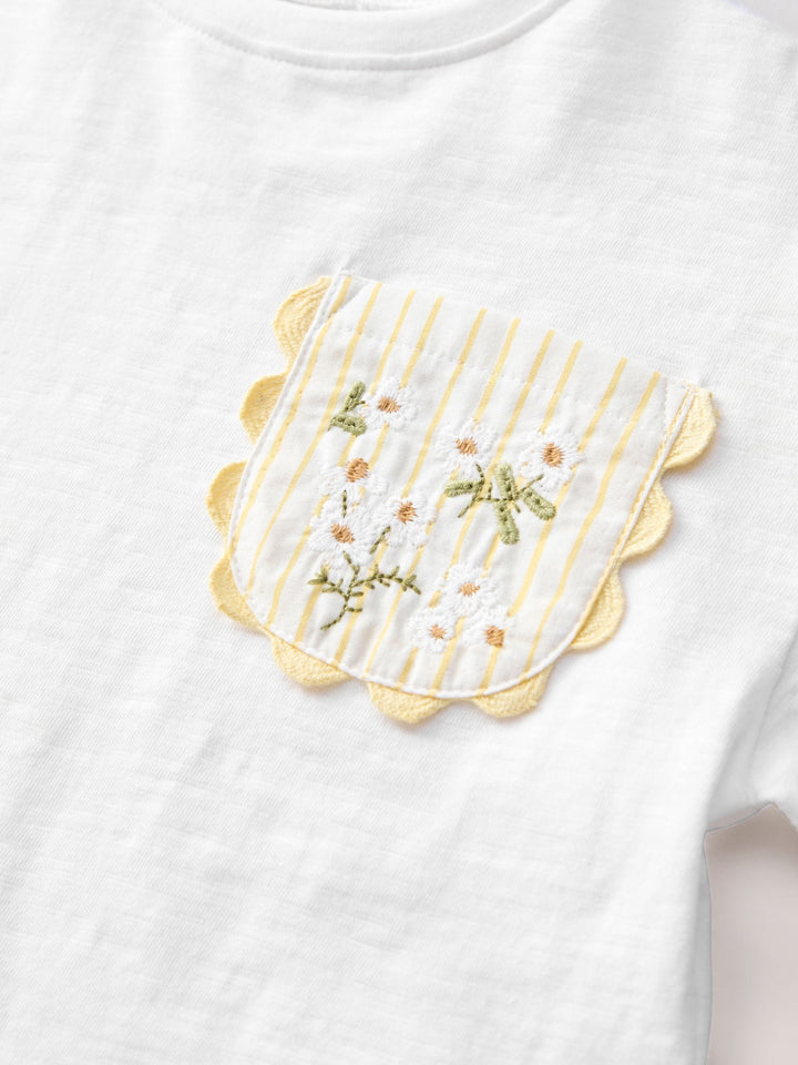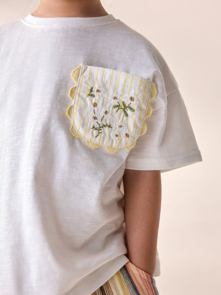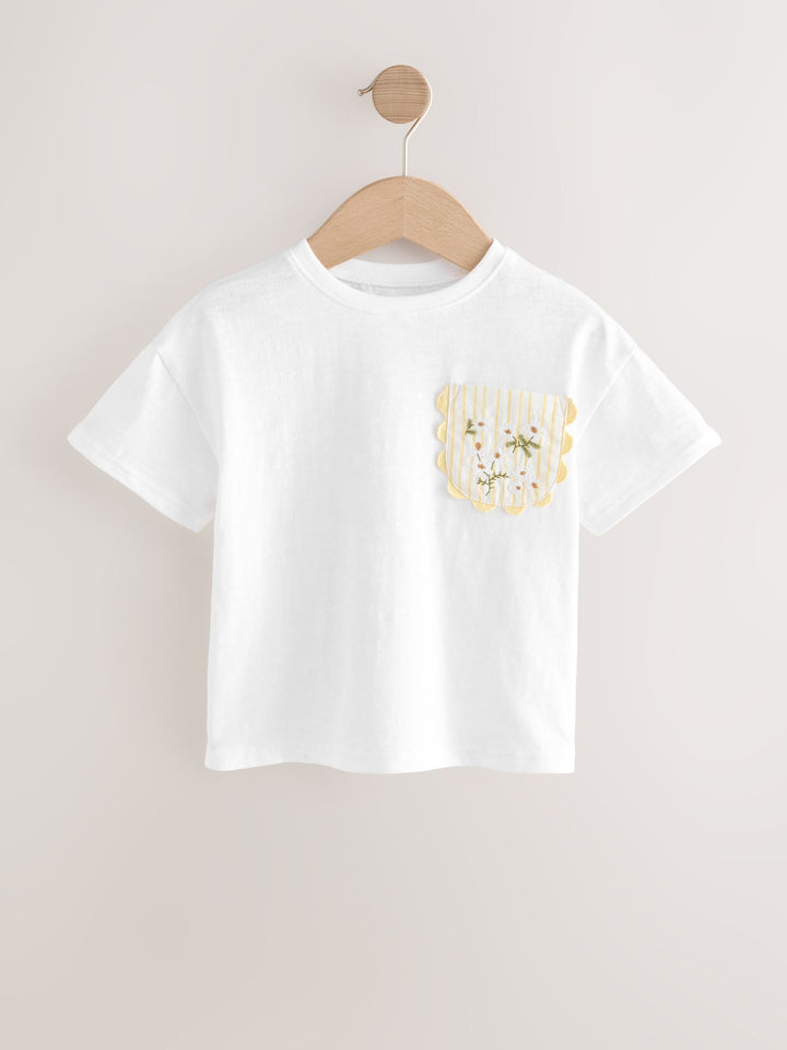 White 100% Cotton Short Sleeve Embroidered Pocket T-Shirt (3mths-7yrs)