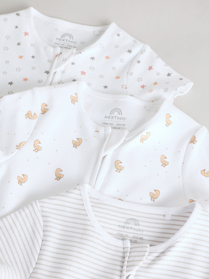 White 100% Cotton Two Way Zip Romper Sleepsuits 3 Pack (0mths-3yrs)