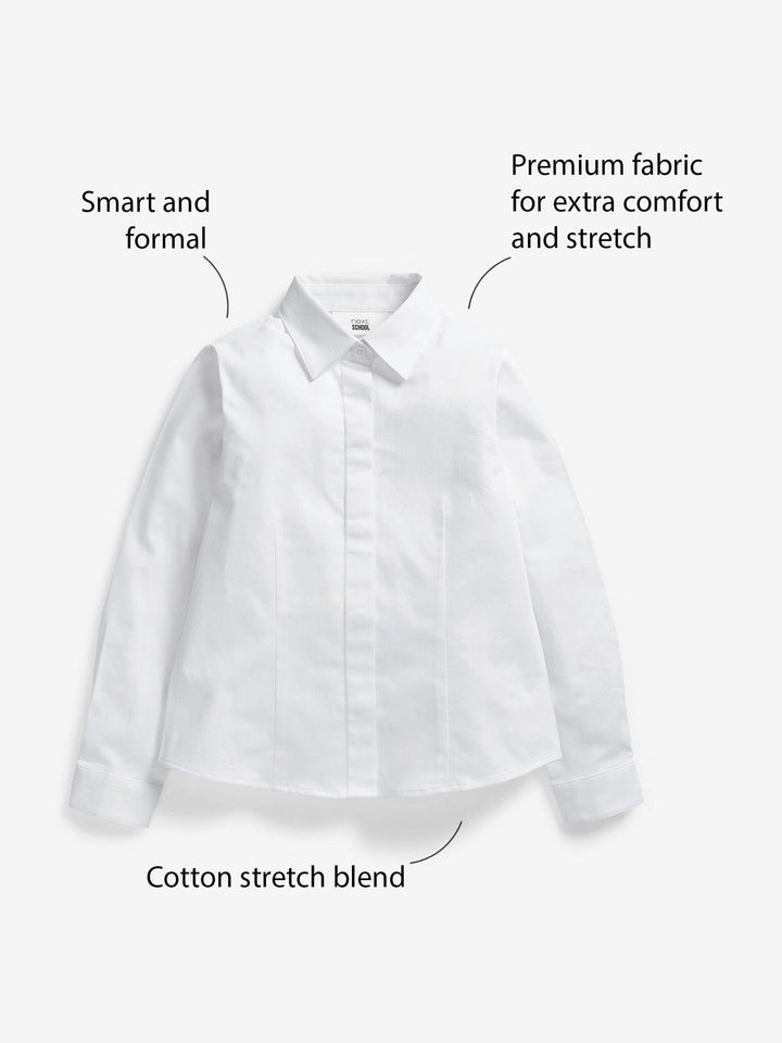 White 2 Pack Fitted Long Sleeve Cotton Rich Stretch Premium School Shirts (3-18yrs)