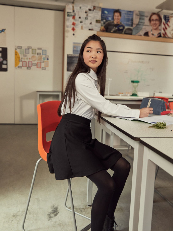 Our comfortable and stretchy 2 Pack of white cotton-rich blend shirts will have them looking smart and stylish at school, with a classic button-up fastening and twin pleats. Key Features: Easy Iron Fabric - Handy easy-iron finish Pro White - Pro white finish which keeps whites whiter for longer Machine washable Long sleeve 2 Pack Twin pleats Machine washable. 2 x Shirt 97% Cotton, 3% Elastane. Country of Origin: Bangladesh