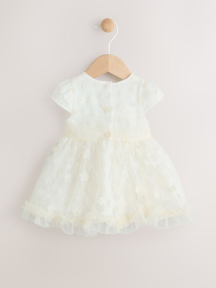 White 3D Flowers Baby Occasion Dress (0mths-2yrs)