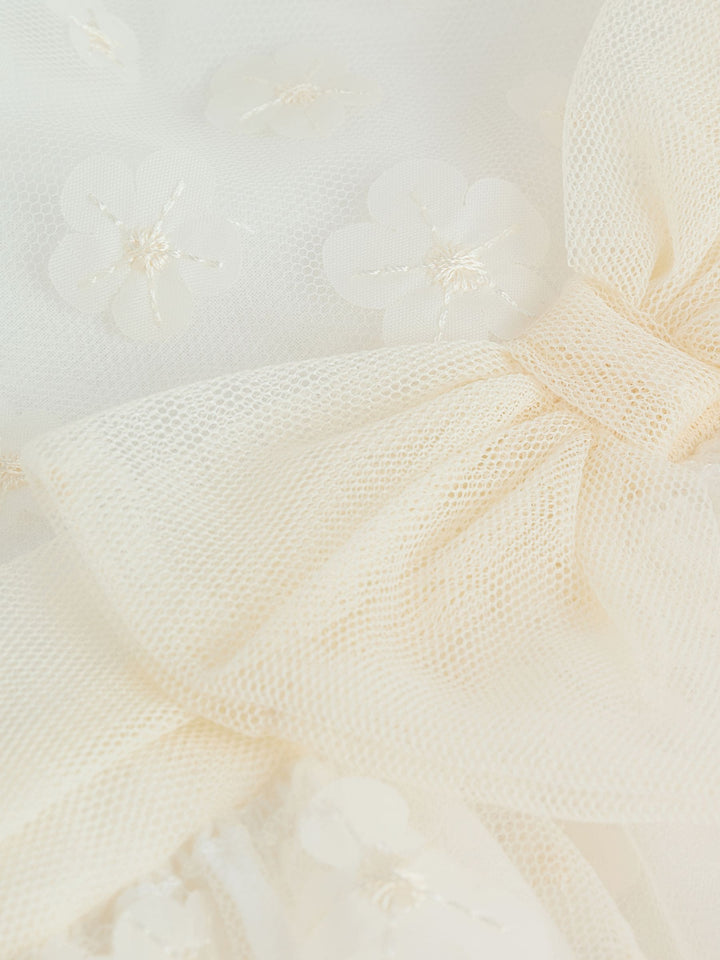 This gorgeous dress is perfect for special occasions, crafted from a mesh design with 3D flower detailing, a front bow and a comfortable cotton lining, finished with a button-up fastening for easy changing. Mesh construction 3D flower design Bow detailing Cotton lining Button fastening Machine washable. Main 100% Polyester. Lining 100% Cotton. Country of Origin: Great Britain Warning: Keep away from fire and flames.