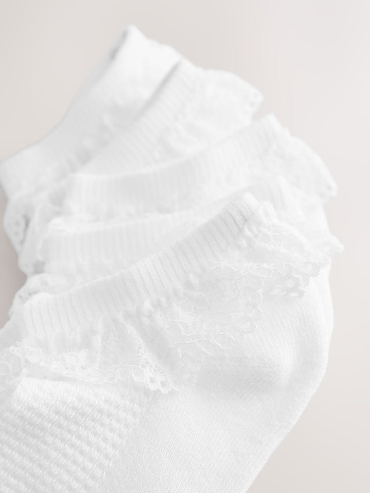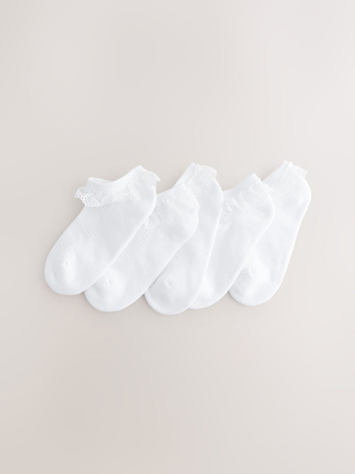 White 5 Pack Cotton Rich Cushioned Soles Ruffle Trainer Socks