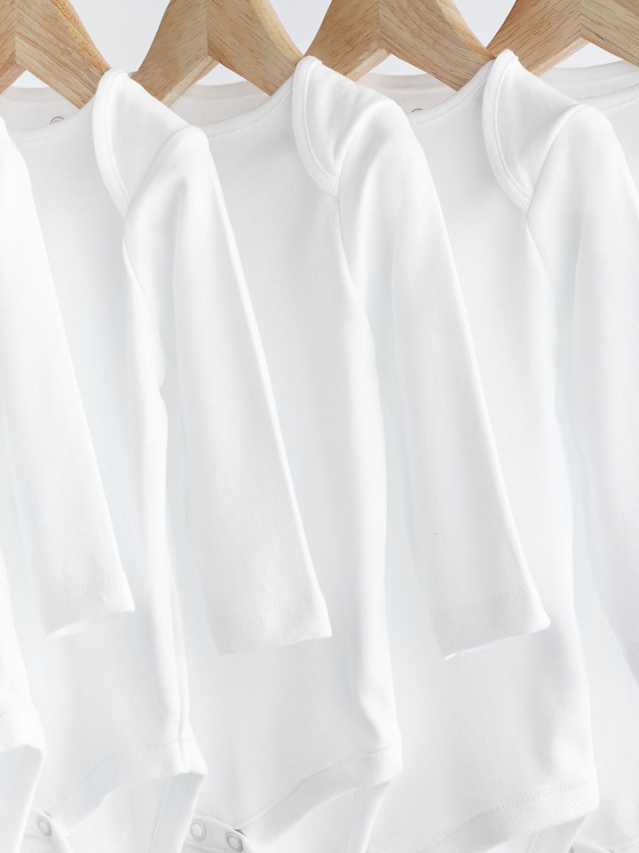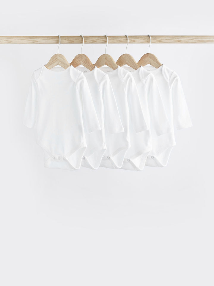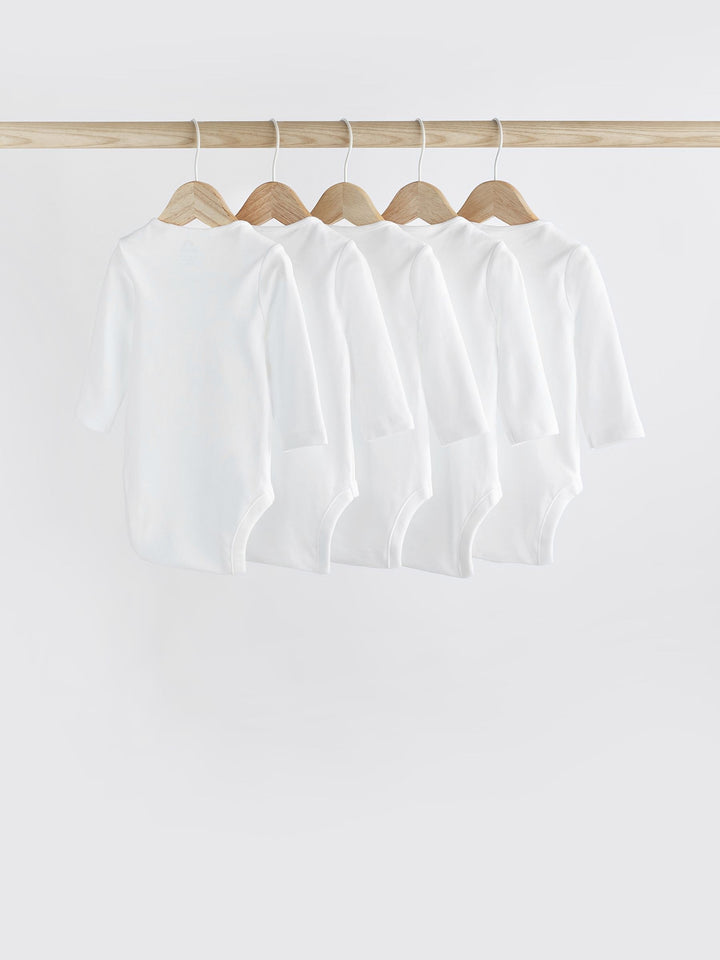 White 5 Pack Essential Baby Long Sleeve Bodysuits