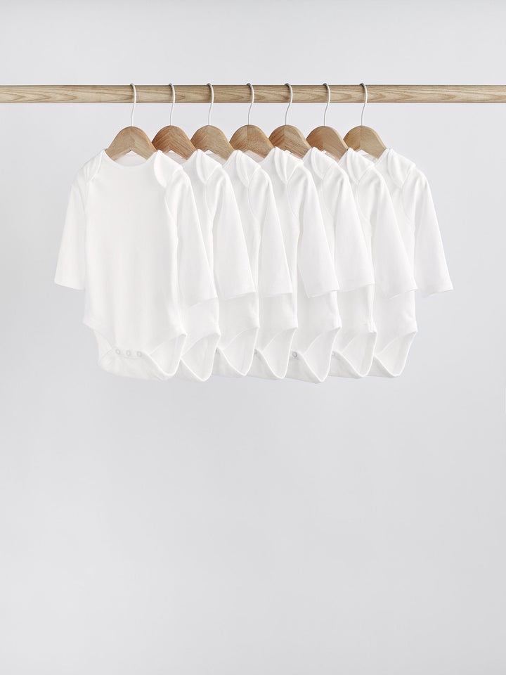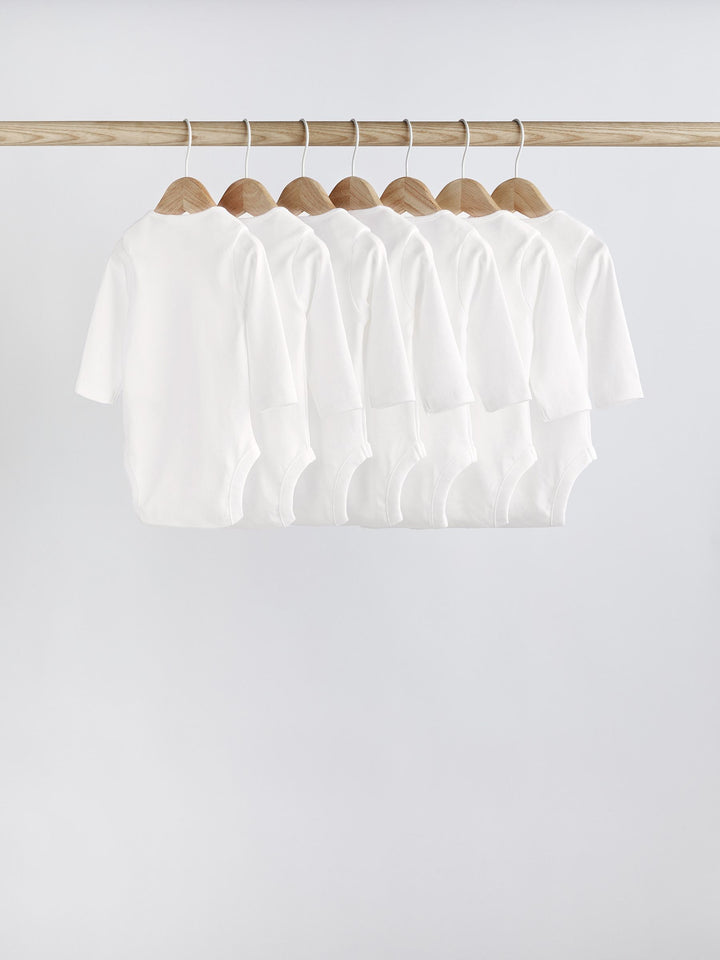 White 7 Pack Essential Baby Long Sleeve Bodysuits