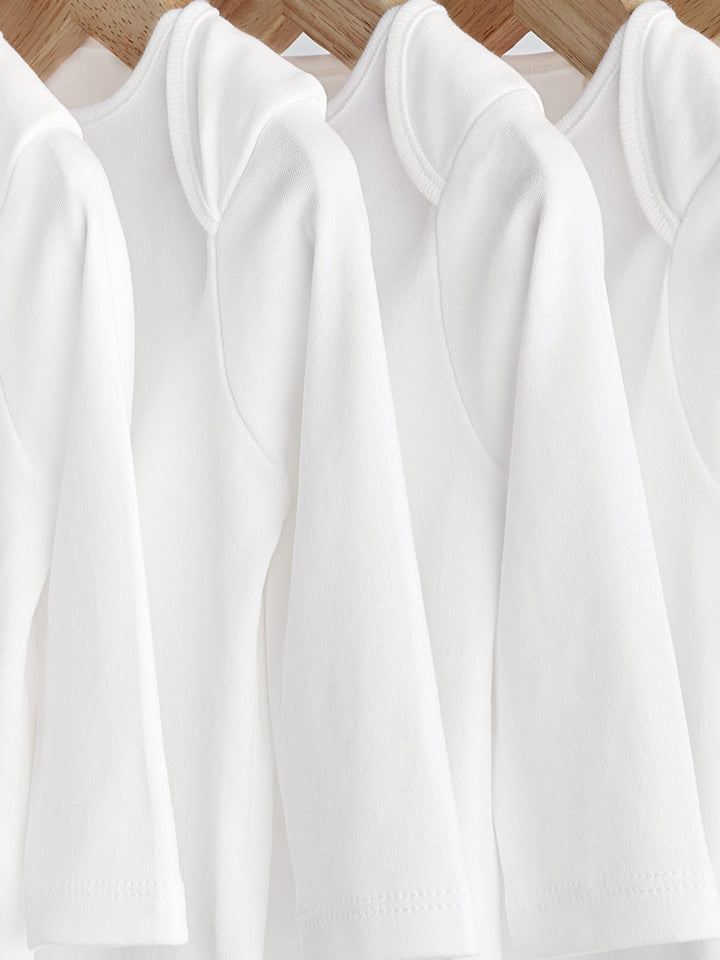 Our essential baby long sleeve bodysuits in white are a supersoft must-have for your little one's wardrobe. Crafted from 100% cotton, these bodysuits are gentle against delicate skin and feature nickle-free poppers for fuss-free changing. Each bodysuit comes with a printed back-neck label that's soft against your baby's neck. With seven in a pack, you're set for a week of comfy, cosy dressing. 7 pack Long sleeve bodysuits Supersoft cotton Machine washable. 7 x Bodysuit 100% Cotton. Country of Origin: Bangladesh Warning: Keep away from fire and flames.
