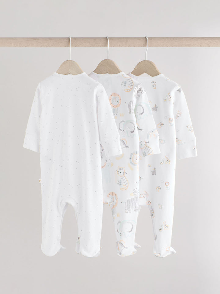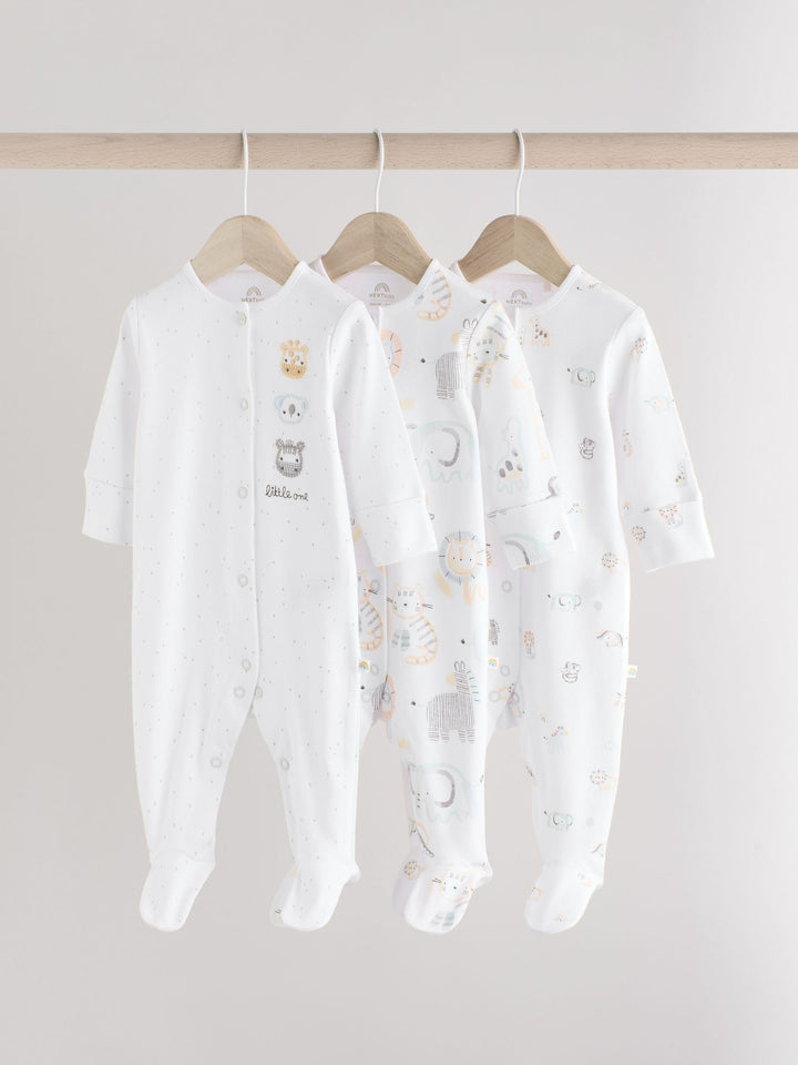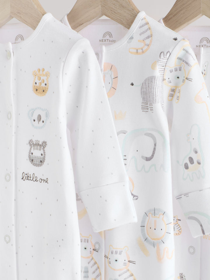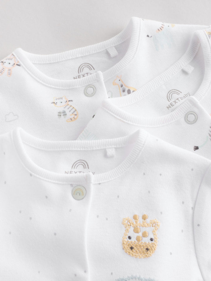 White Animal Print 100% Cotton Baby Sleepsuits 3 Pack (0-2yrs)