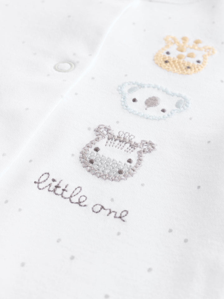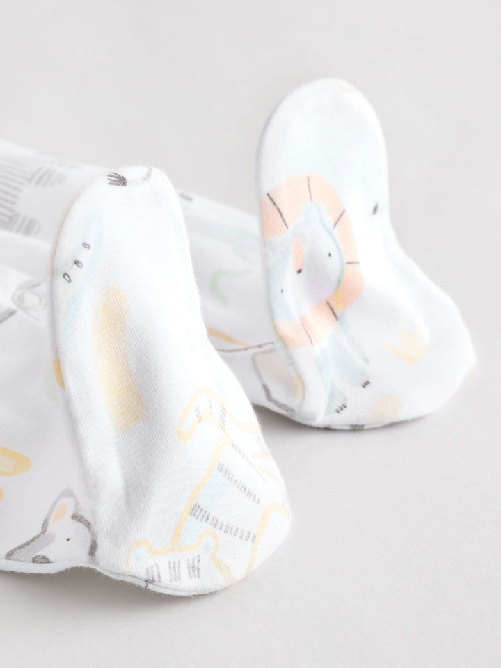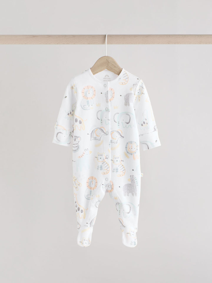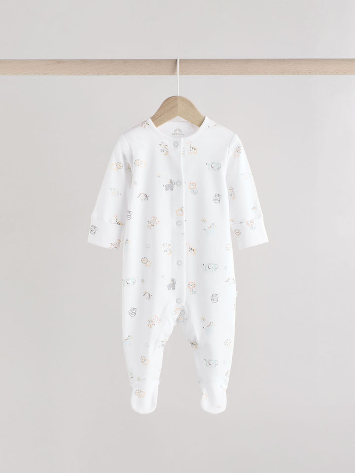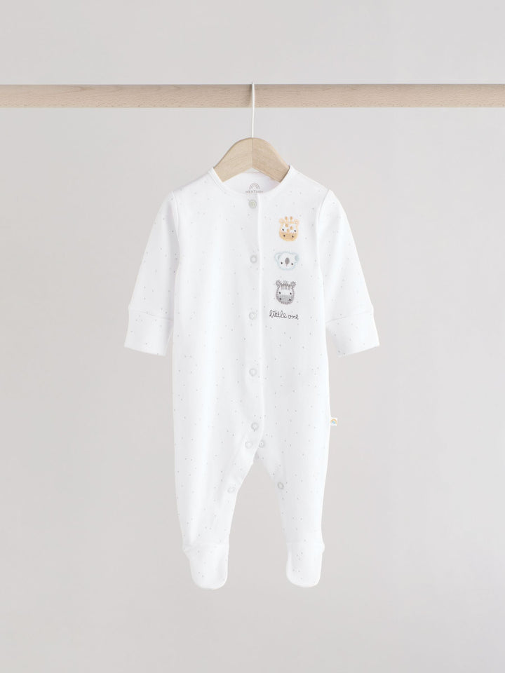 White Animal Print 100% Cotton Baby Sleepsuits 3 Pack (0-2yrs)