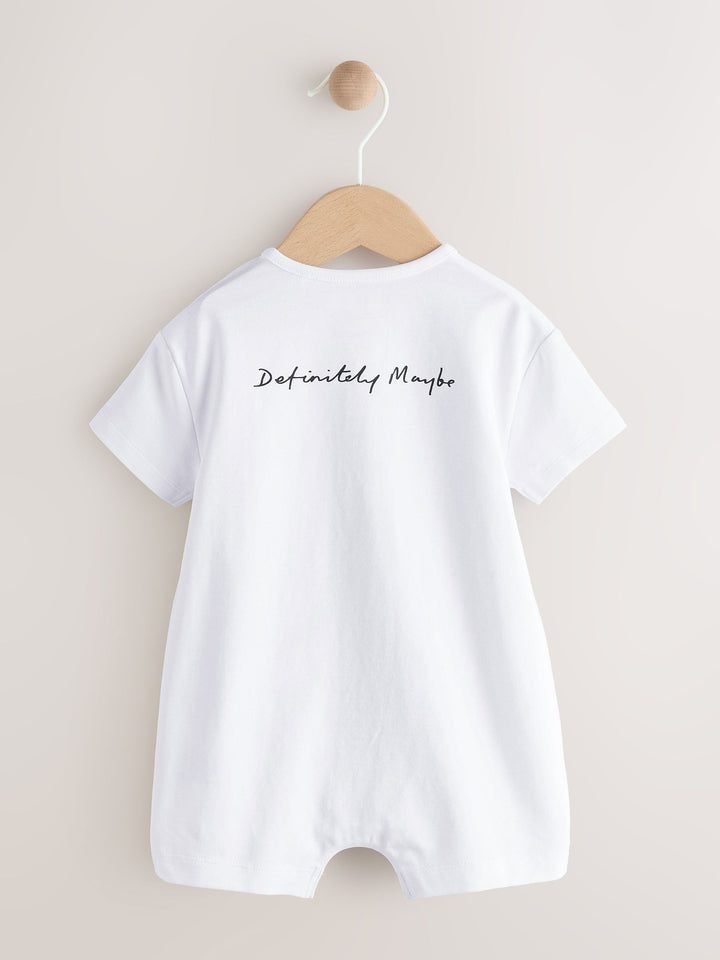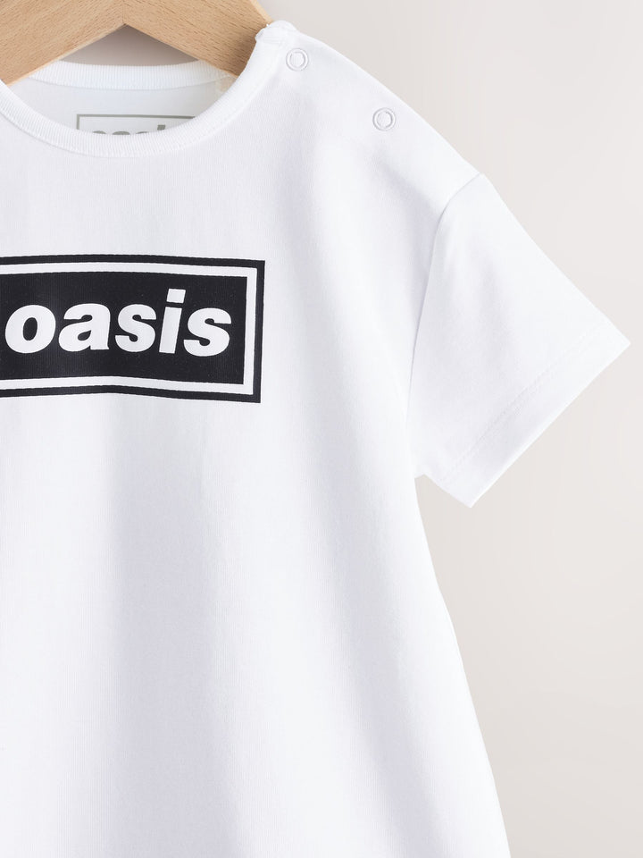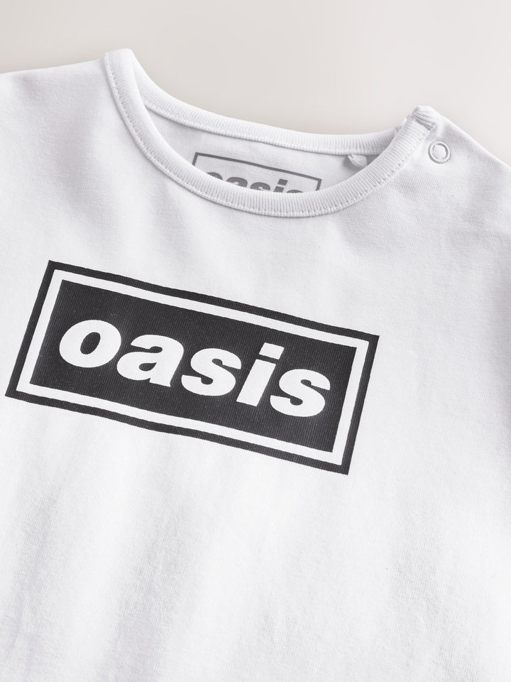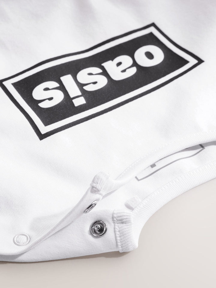 Perfect for your little rock 'n roll star, this cotton-rich baby romper features the iconic Oasis logo to the chest, featuring a popper fastening, short sleeves and short legs. Oasis print Cotton-rich Short sleeves Popper fastening Machine washable. 95% Cotton, 5% Elastane. Country of Origin: Bangladesh Warning: Keep away from fire and flames.
