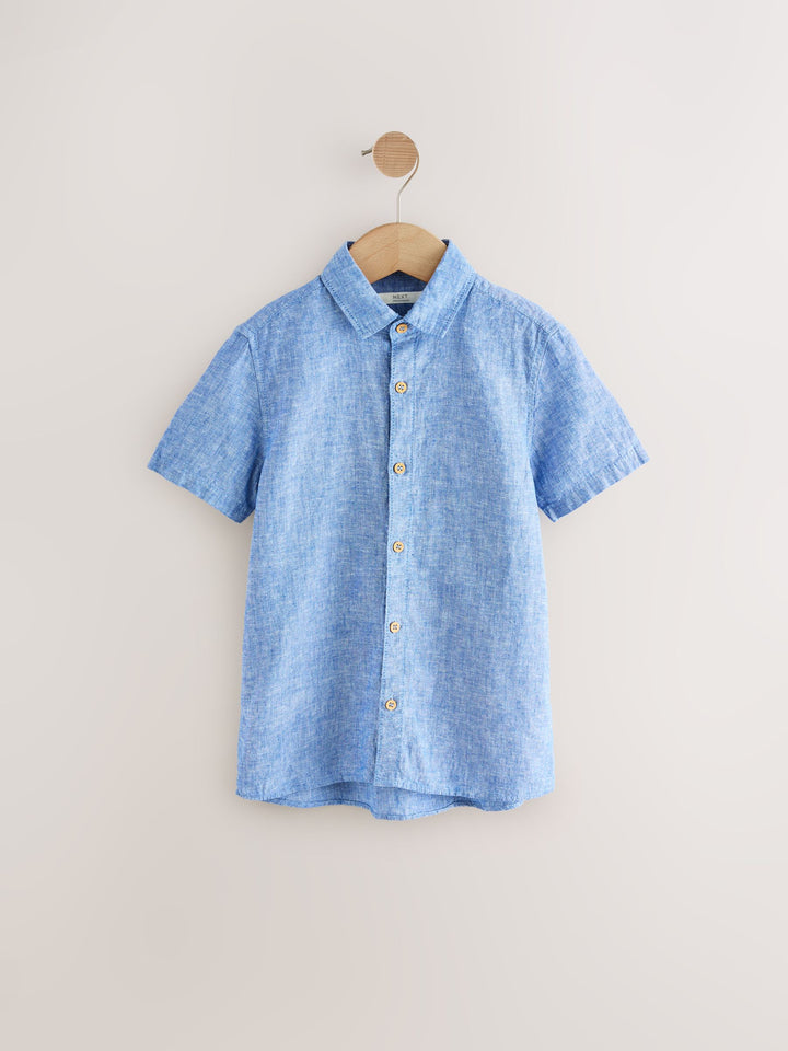 This stylish and breathable cotton and linen blend shirt features a button-up fastening, a pointed collar and short sleeves, perfect for wearing over a t-shirt for a layered casual look. Regular fit Cotton and linen blend Button-up fastening Pointed collar Short sleeves 2 x Shirt 55% Linen, 45% Cotton. Country of Origin: Myanmar