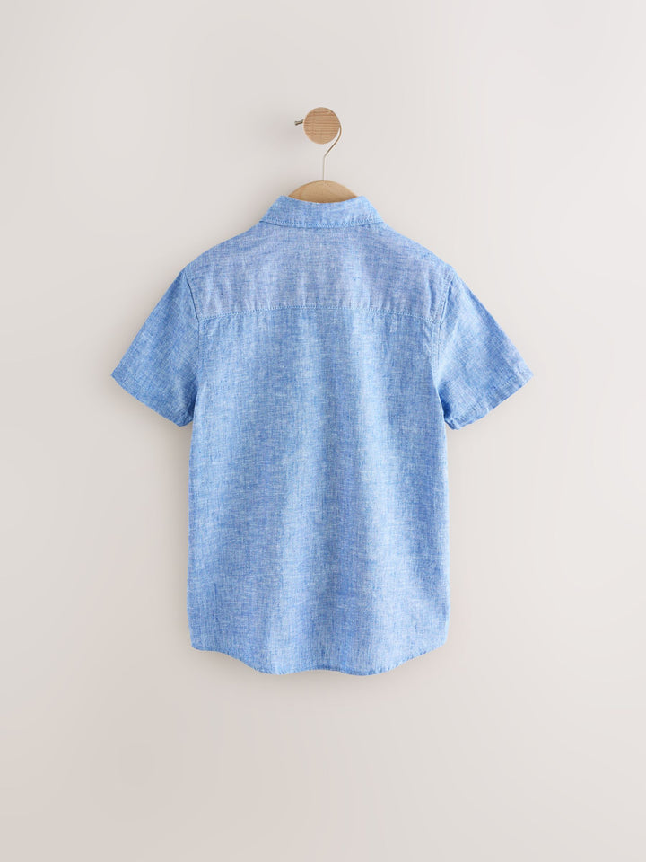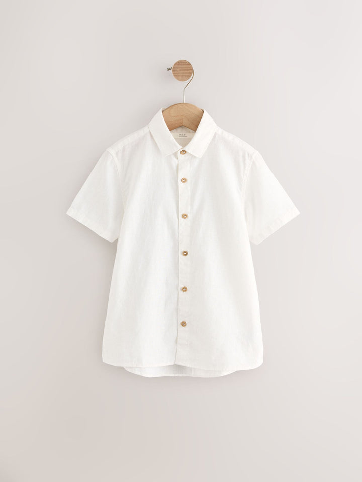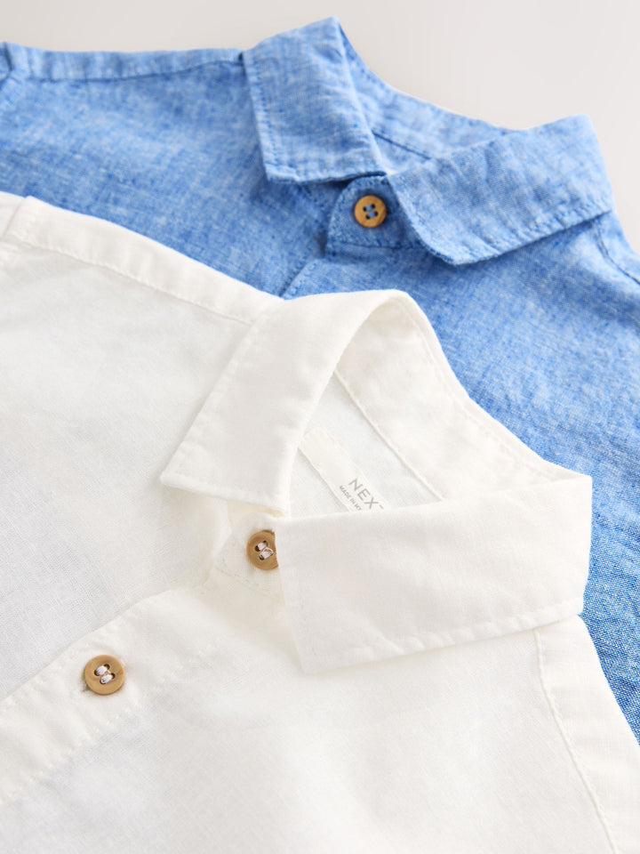 White/Blue 2 Pack Short Sleeves Linen Blend Shirt (3mths-16yrs)