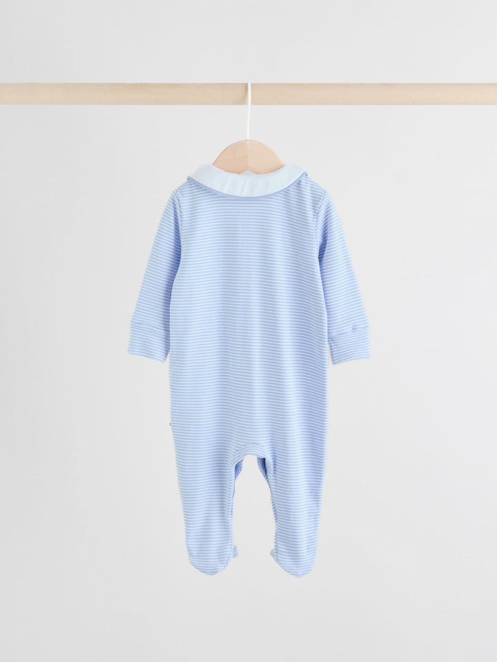 This 3-pack of pure cotton sleepsuits are super comfortable, featuring a popper fastening for easy wear, embroidered detailing and a round collar. Turn back scratch mitts have been added up to 3-6 months for extra comfort, with inner lined feet and an anti-slip sole print from 9-12 months. 3-pack 100% cotton Popper fastening Embroidered detail Turn-back scratch mitts up to 3-6 months Inner lined feet Anti-slip sole print from 9-12 months 3 x Sleepsuit 100% Cotton. Country of Origin: Bangladesh Warning: Keep away from fire and flames.