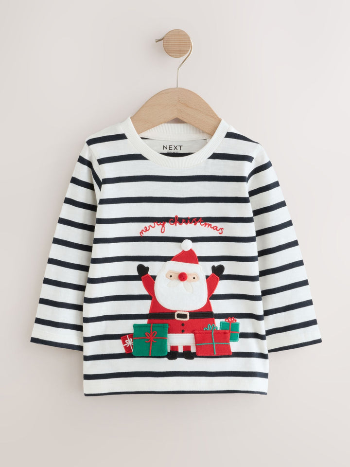 White/Blue Santa Appliqué Christmas Long Sleeve T-Shirt (3mths-7yrs)
