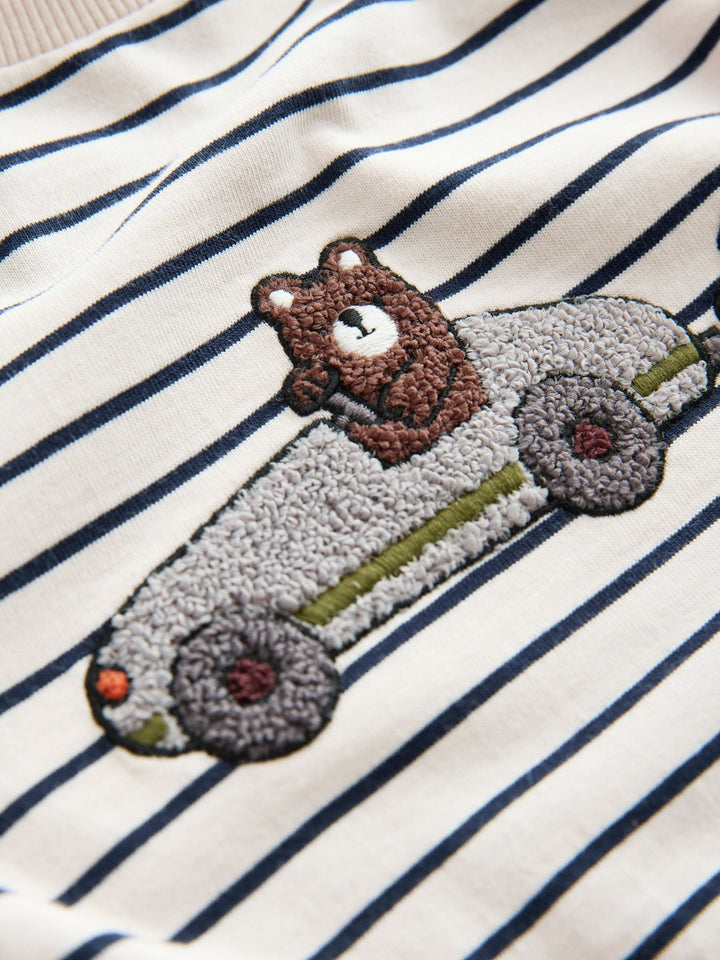 White/Blue Stripe Bear Car Long Sleeve Appliqué T-Shirt (3mths-7yrs)