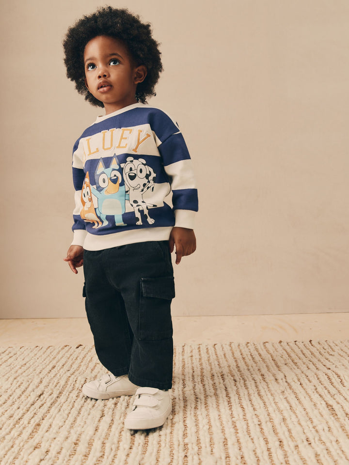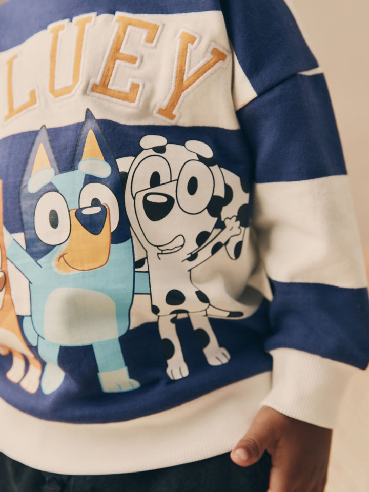 White/Blue Stripe Bluey Crew Neck Cotton Sweatshirt (12mths-8yrs)