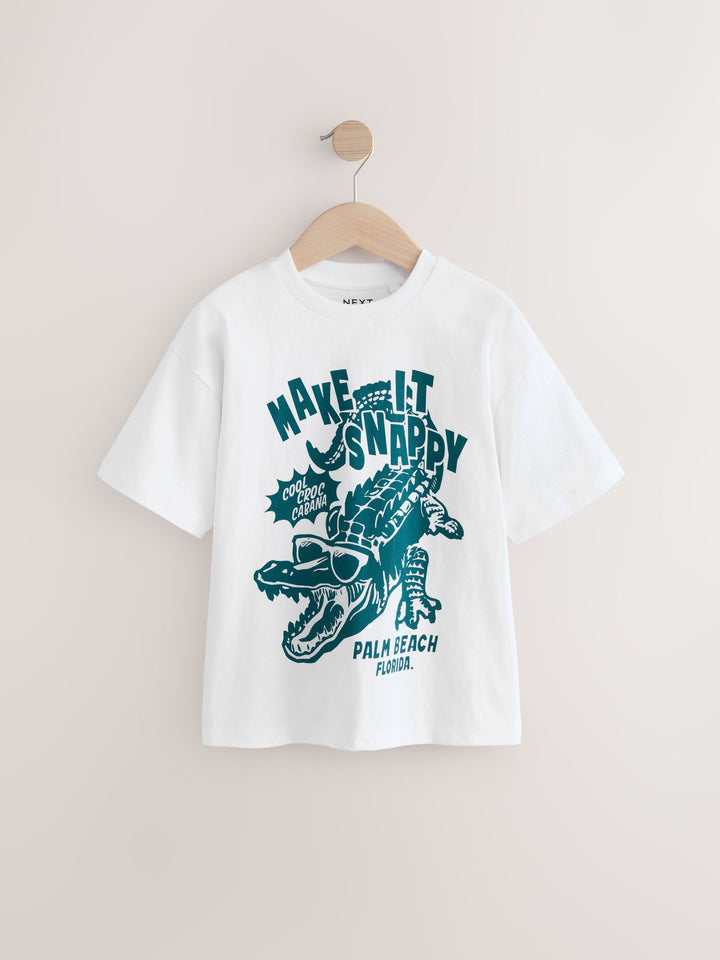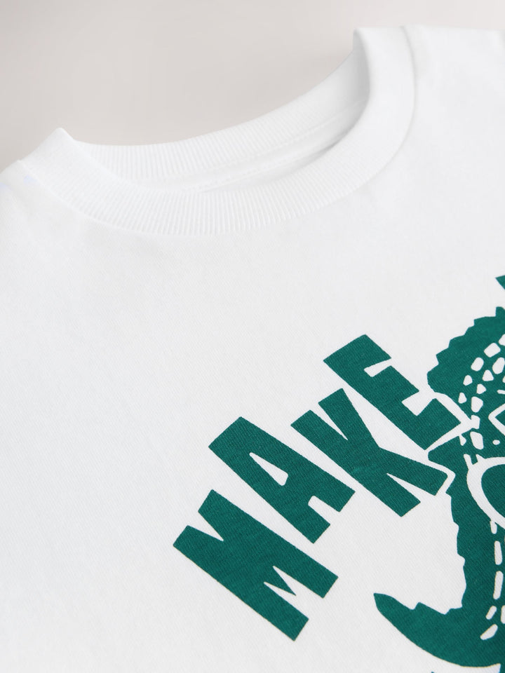 Add to their cool kid style with our relaxed fit white short sleeve t-shirt, featuring a green crocodile print. With an eye-catching design and comfortable relaxed fit, they'll look as cool as they feel. 100% cotton Graphic print t-shirt Relaxed fit Short sleeves Comfortable fabric Machine washable. 100% Cotton. Country of Origin: Bangladesh