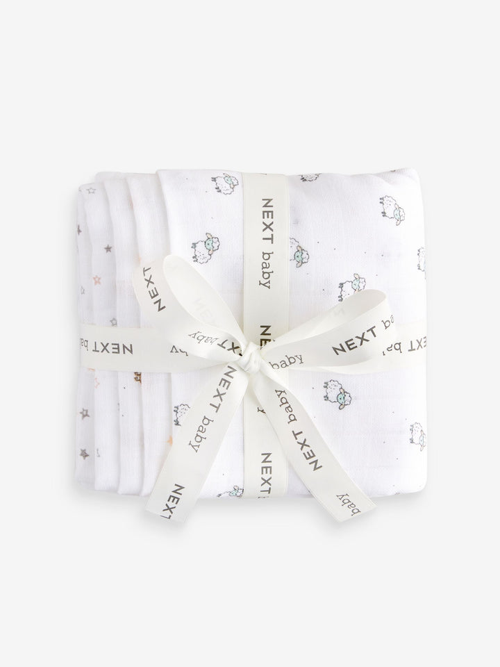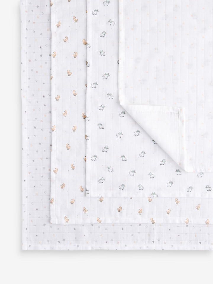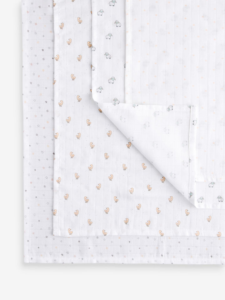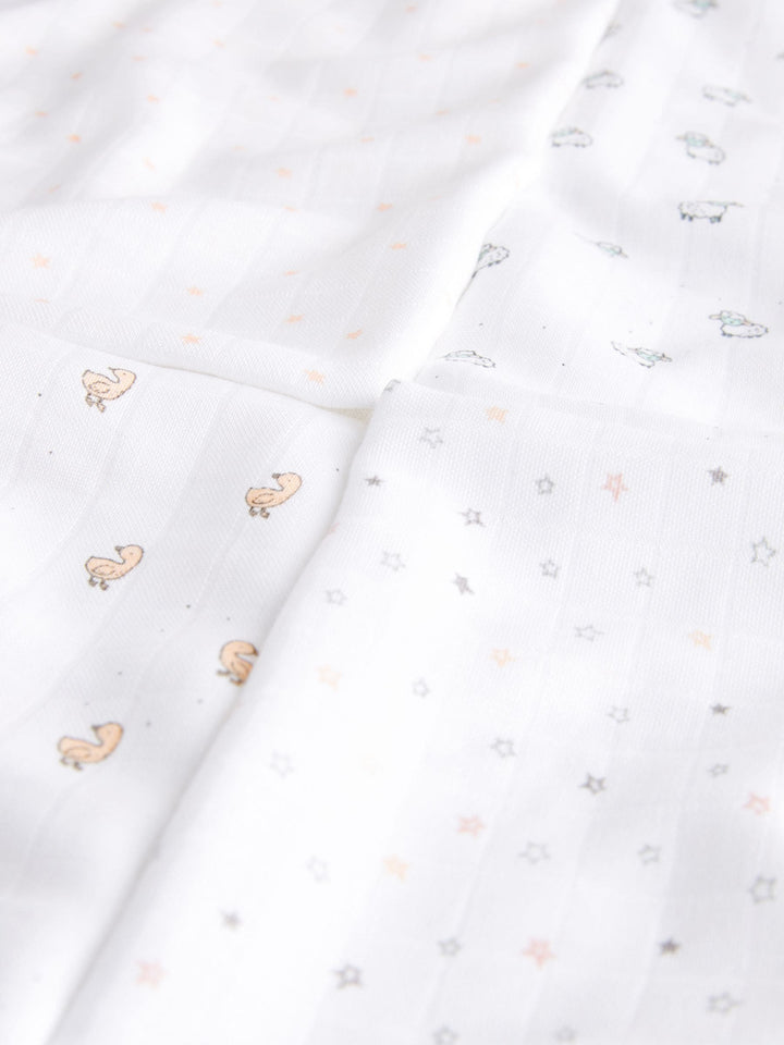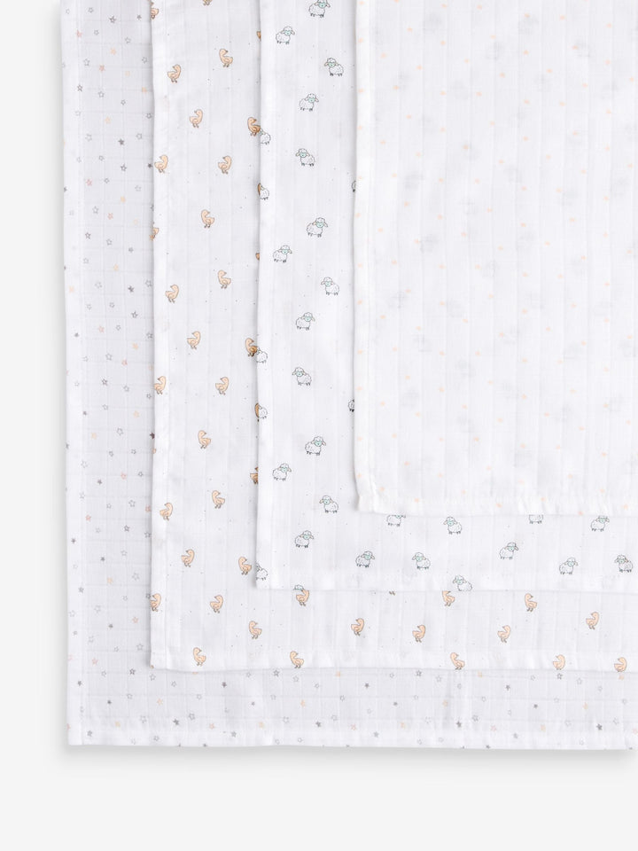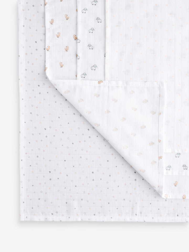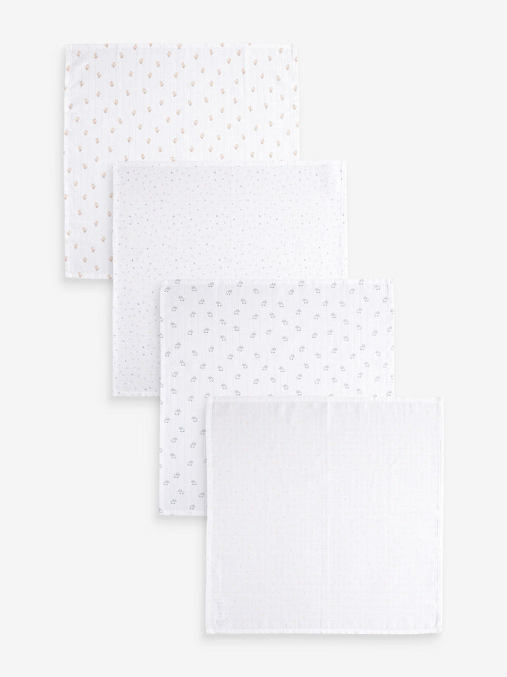 White Delicate Animal Baby Muslins Cloths 4 Pack