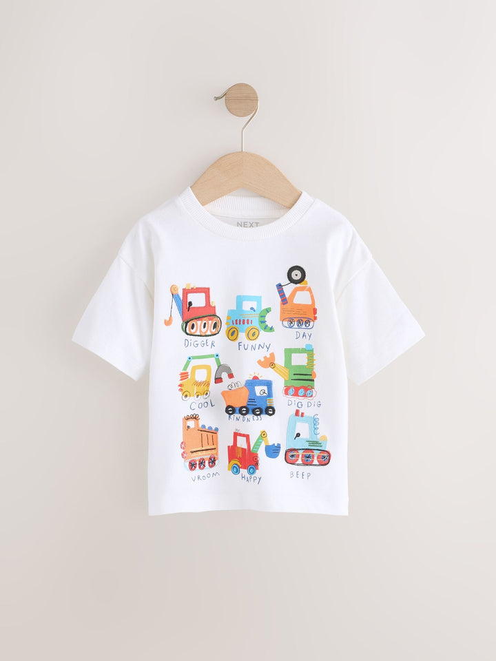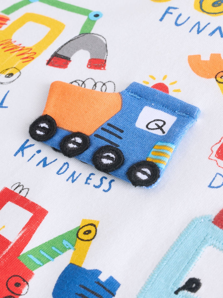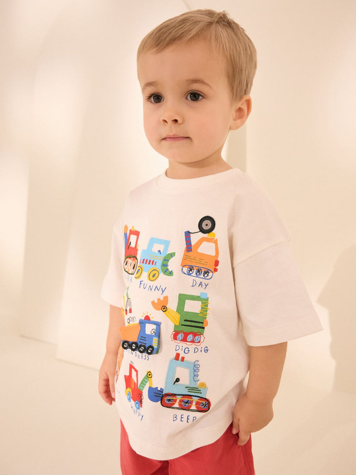 White Digger Short Sleeve Interactive Appliqué T-Shirt (3mths-7yrs)