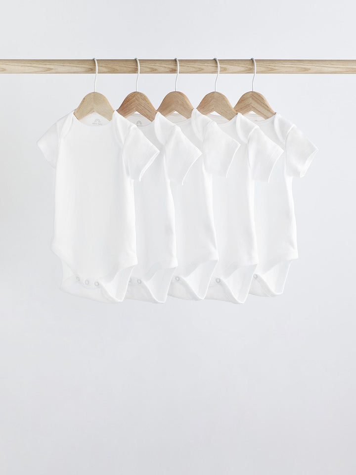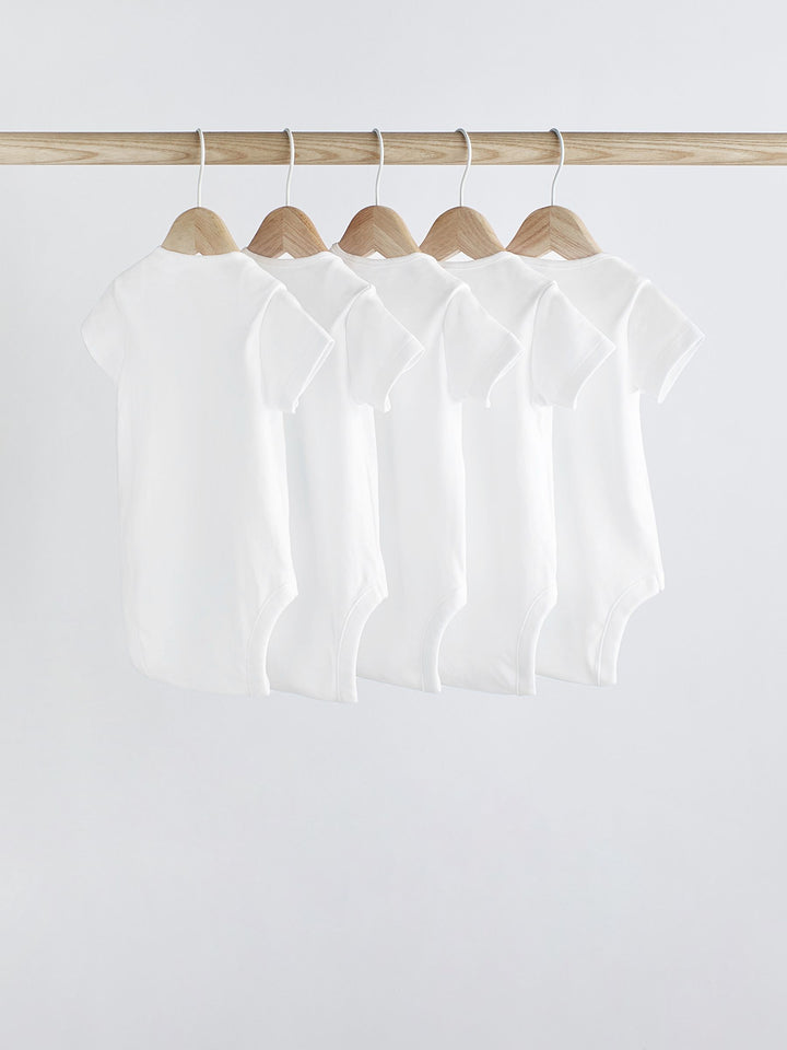 White Essential 5 Pack Baby Short Sleeve Bodysuits