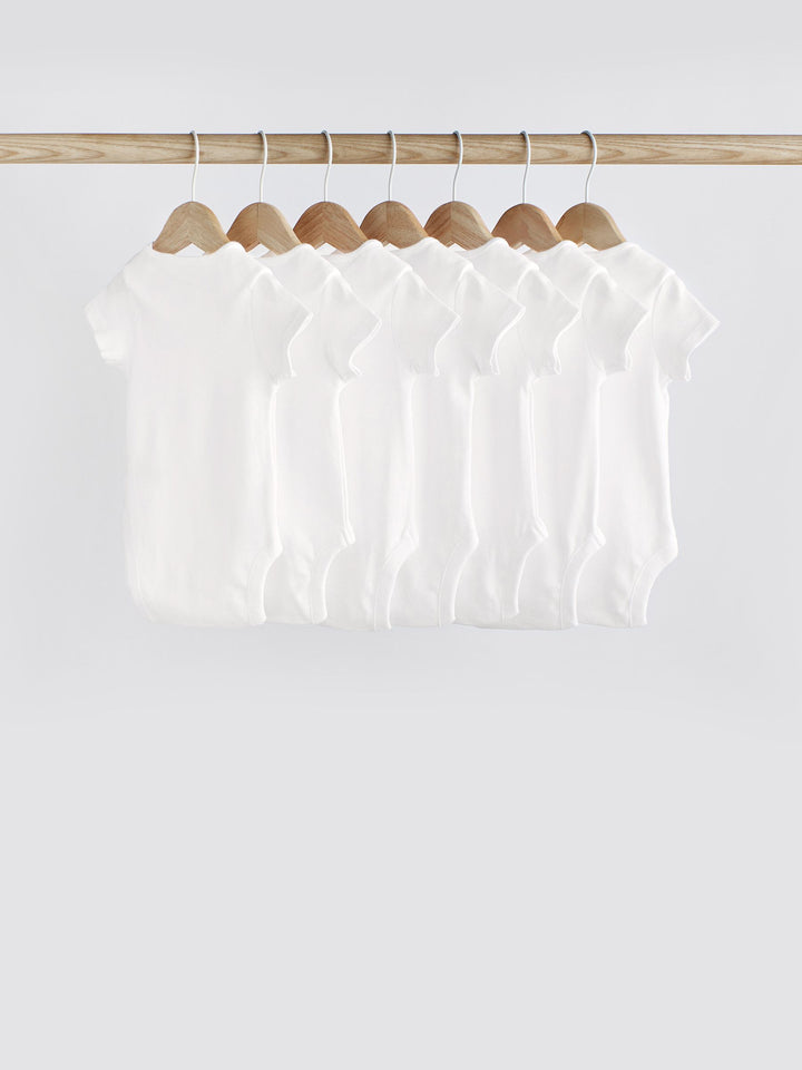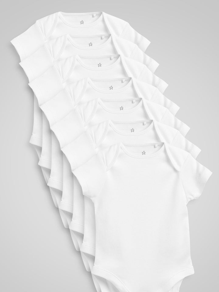 White Essential 7 Pack Baby Short Sleeve Bodysuits