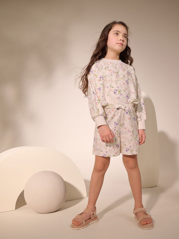 These comfortable cotton shorts are a must-have for her summer wardrobe, in a white floral print with a comfortable elasticated waistband, finished with an adjustable drawstring and side pockets. Matching hoodie sold separately. 100% cotton Elasticated waistband Side pockets 100% Cotton. Country of Origin: Sri Lanka