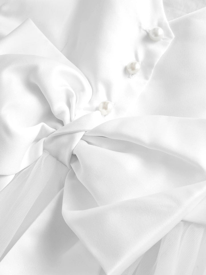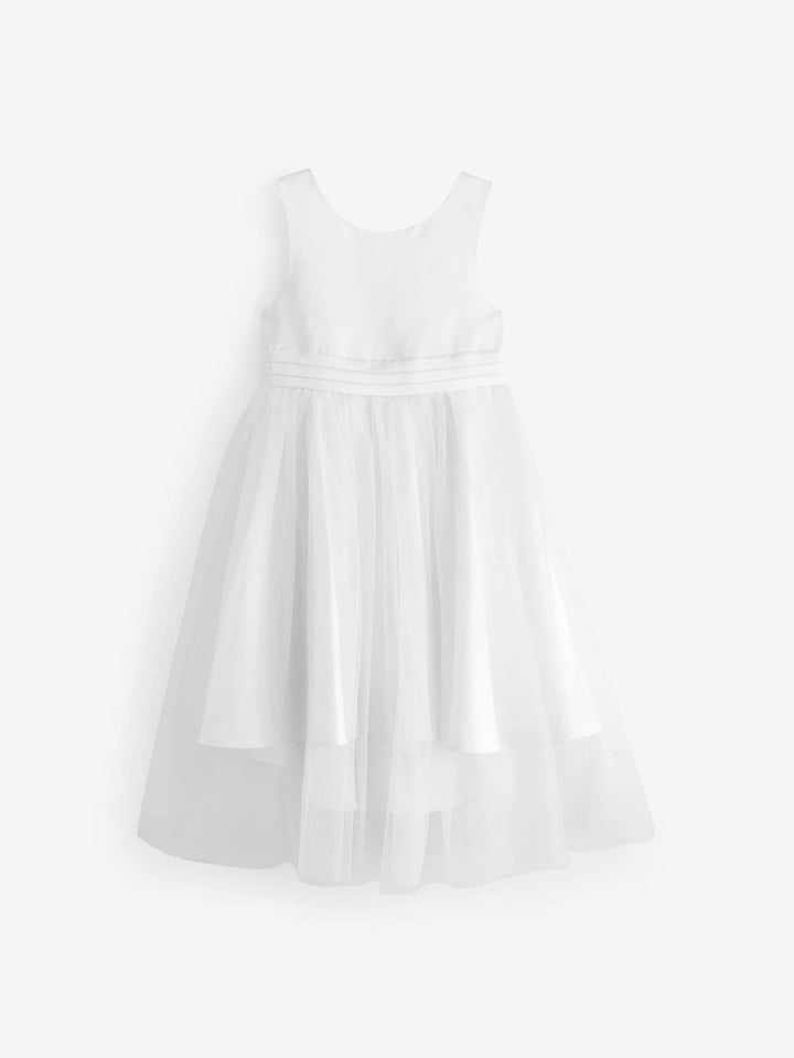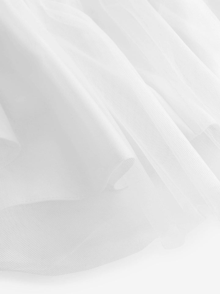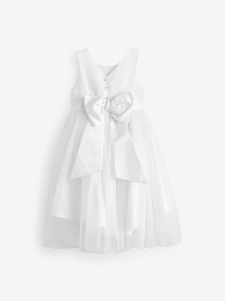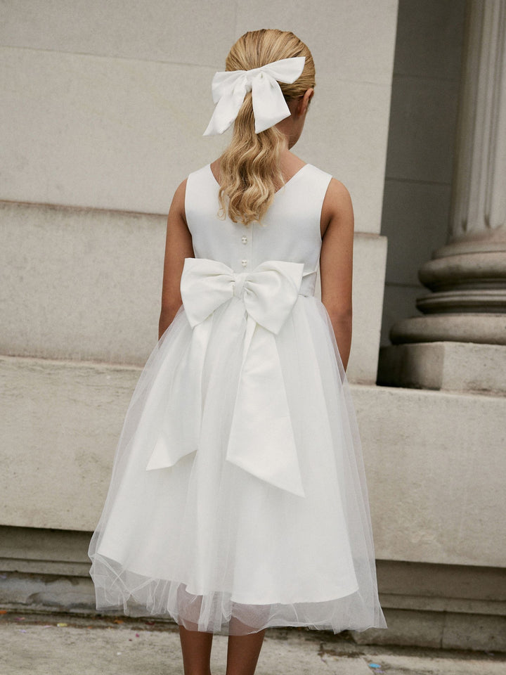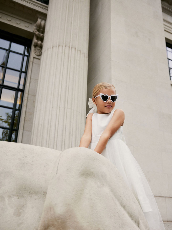 She'll be the best dressed flower girl in our bridesmaid white dress. This stunning frock is cut in a midi length and features a delicate tulle skirt made for twirling and dancing. Fully lined with button fastening down the back, this gorgeous number is complete with a beautiful bow to make her the belle of the ball. Tulle skirt Midi length Fully lined Bow detailing Main 100% Recycled polyester. Lining 100% Cotton. Net 100% Recycled Nylon. Country of Origin: China