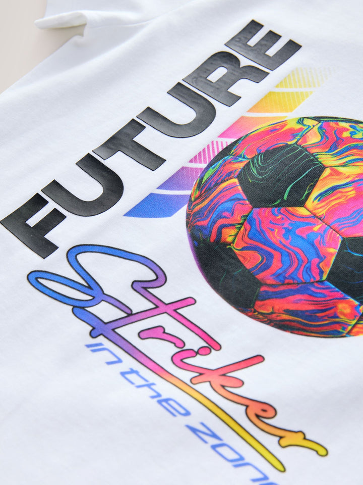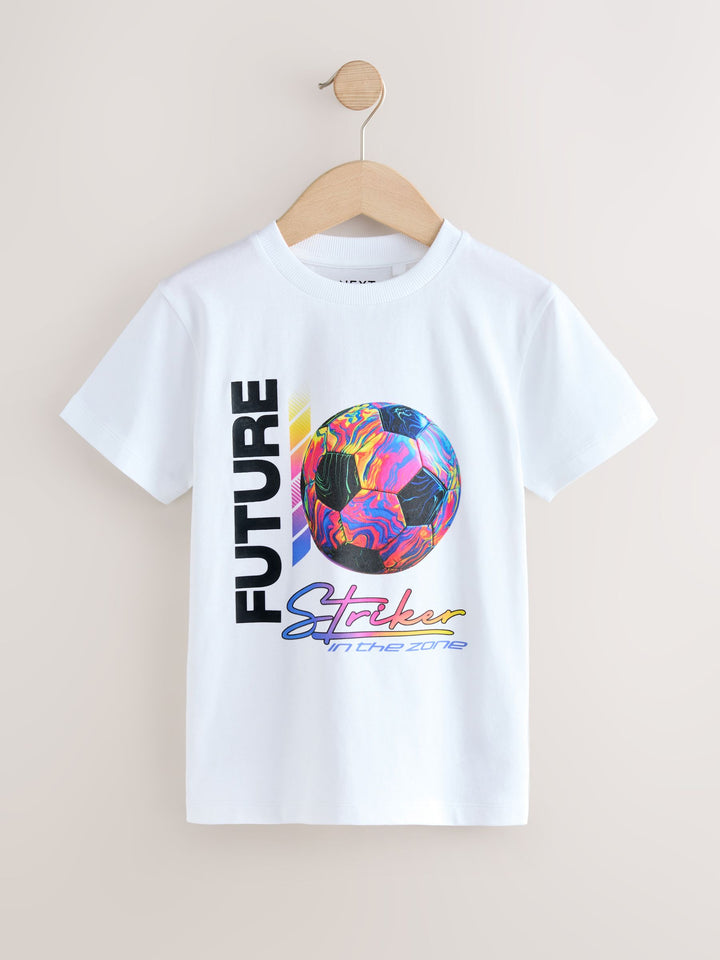 White Football Striker Regular Fit Short Sleeve Graphic Print T-Shirt (3-16yrs)