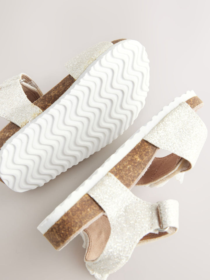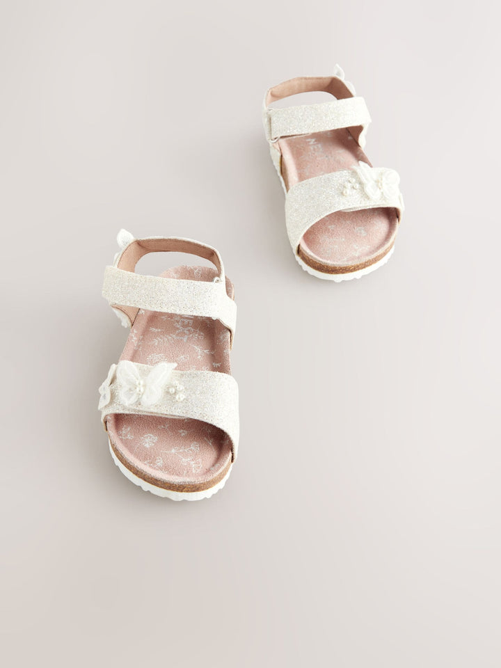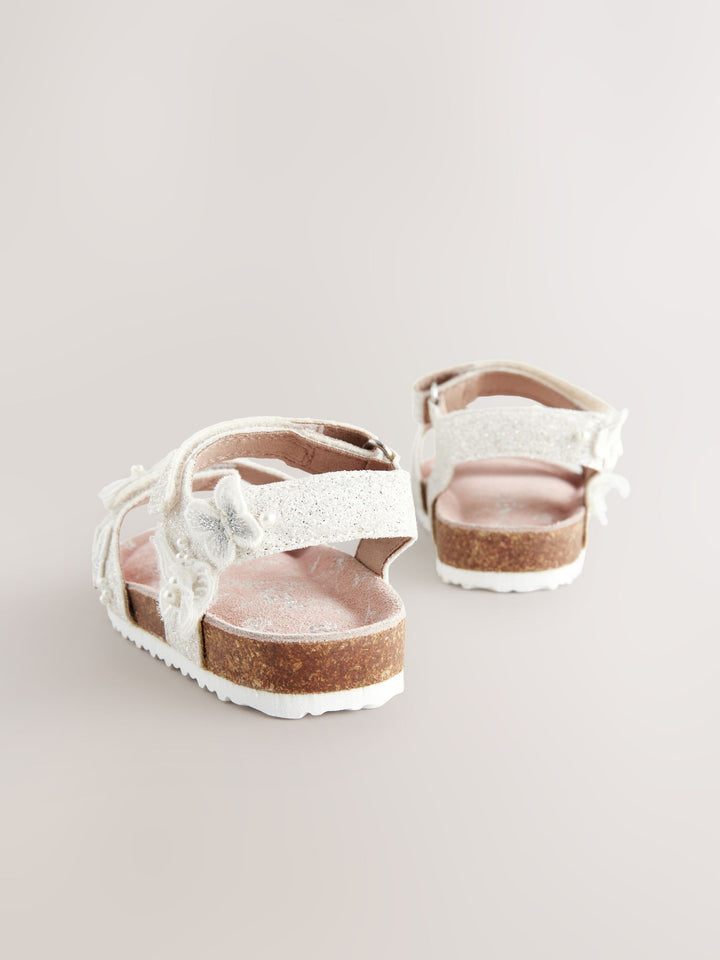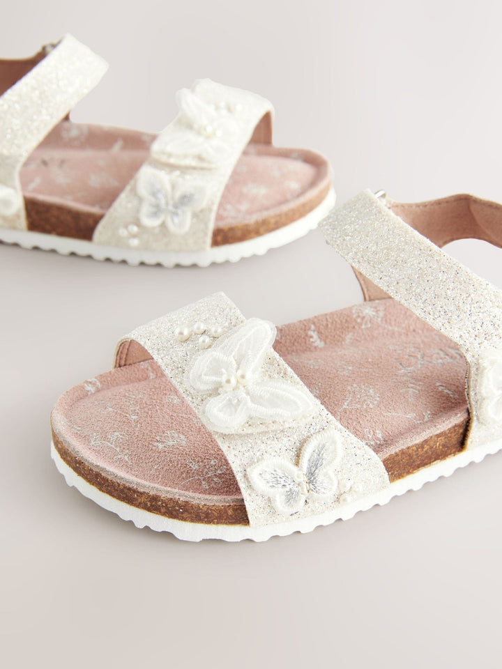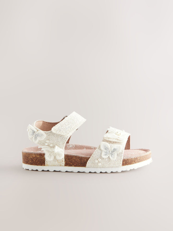White Glitter Occasion Butterfly Standard Fit (F) Touch Fastening Corkbed Sandals