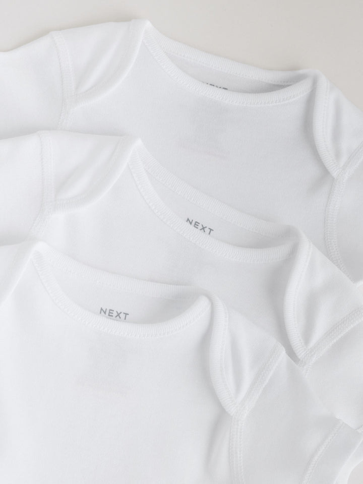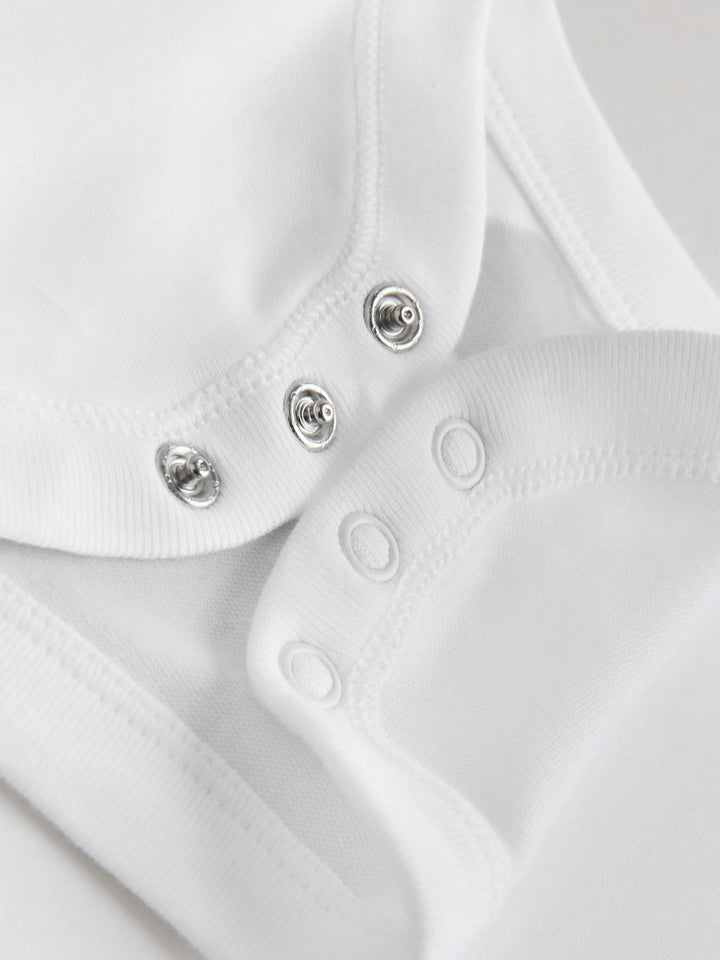 Our 3 pack kind to skin baby bodysuits in white are crafted from a luxurious cotton blend fabric, ensuring optimal moisture absorption and breathability for your little one's comfort. With the addition of Tencel, these bodysuits not only feel cool and dry, but also provide a gentle touch against delicate skin. Plus, our thoughtful design includes nickel-free poppers and soft seams, guaranteeing a irritation-free experience for your baby. Machine washable. 3 x Bodysuit 52% Cotton, 48% TENCEL™ lyocell. Country of Origin: India Warning: Keep away from fire and flames.