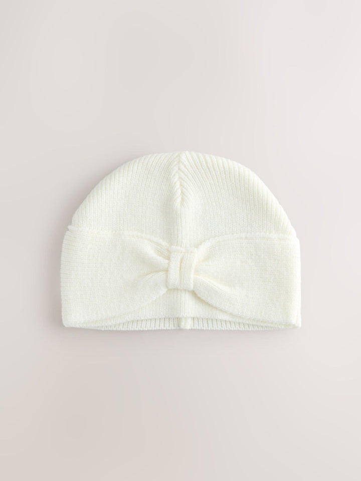 White Knitted Bow Baby Turban Hat (0mths-2yrs)