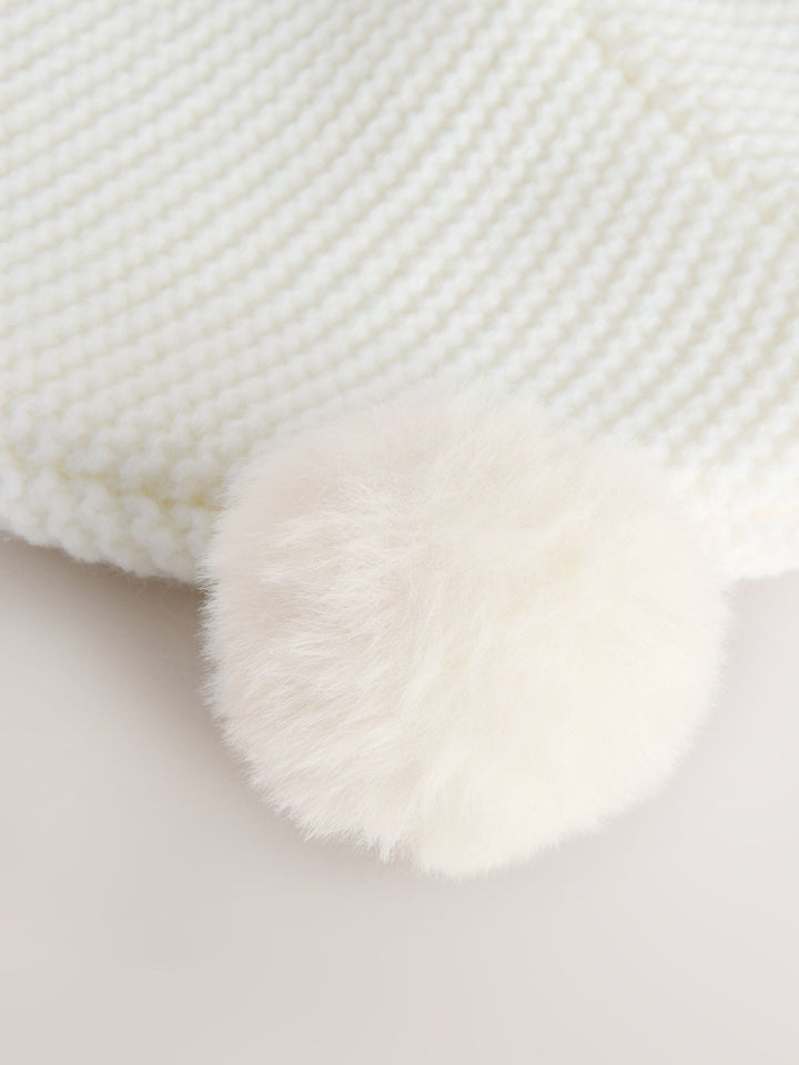 White Knitted Double Pom Baby Trapper Hat