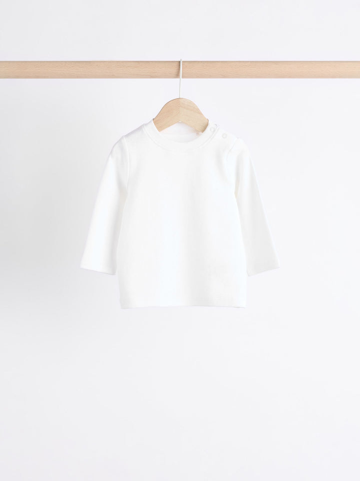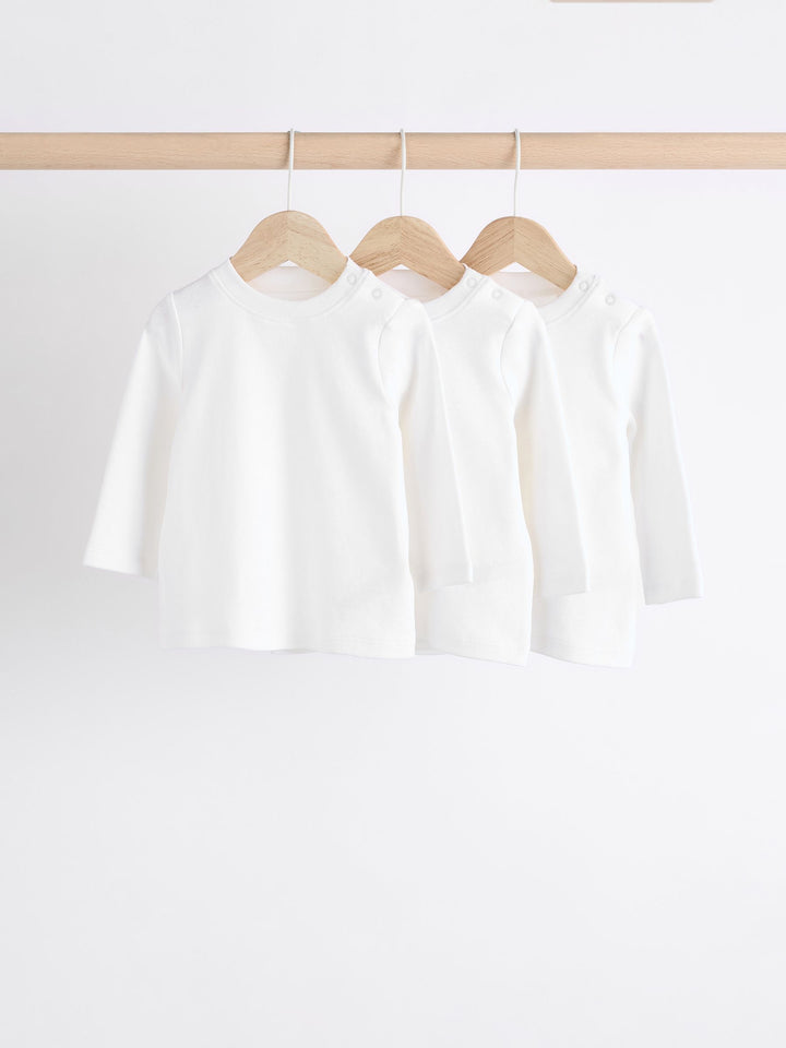 White Long Sleeve 100% Cotton T-Shirts 3 Pack (0mths-2yrs)