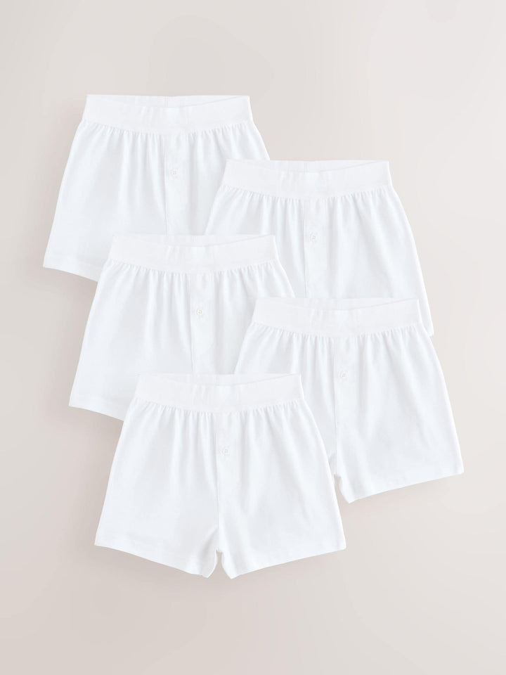 White Loose Fit 100% Cotton Boxers 5 Pack (1.5-16yrs)