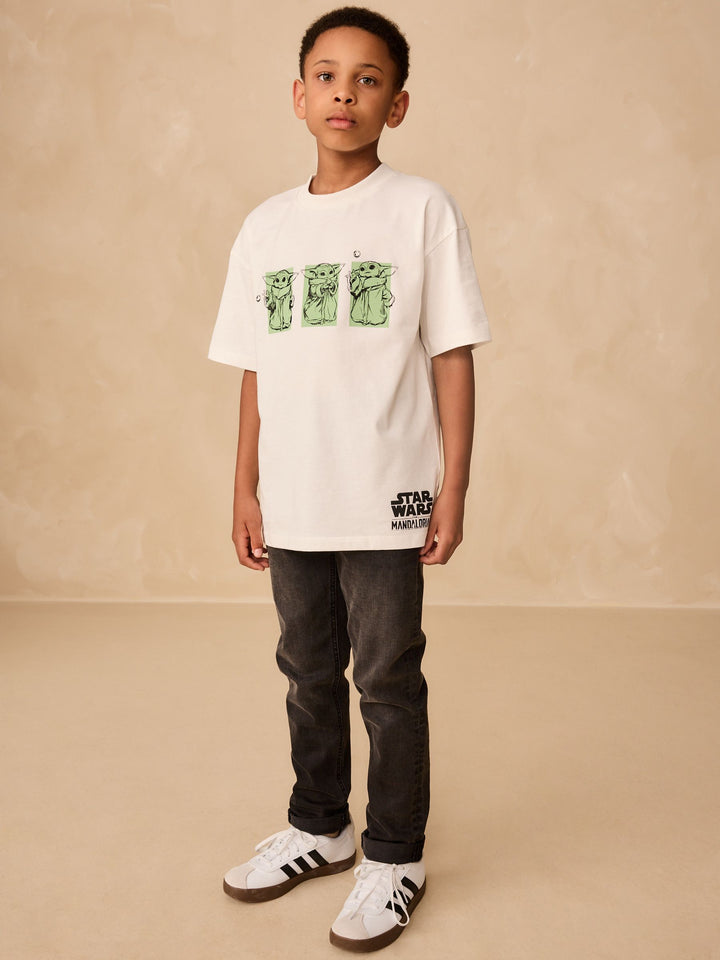 Star Wars fans will love this t-shirt, made from pure cotton in a charcoal grey acid wash finish, featuring a Mandalorian graphic print with a puff print logo and a ribbed crewneck collar. Regular fit 100% cotton Charcoal grey Mandalorian Star Wars print Machine washable. 100% Cotton. Country of Origin: Bangladesh